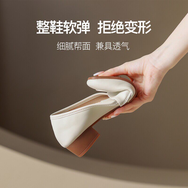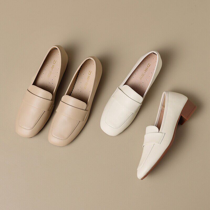 ZHR真皮乐福鞋女款2026新款春秋法式粗跟白色小皮鞋通勤软底单鞋