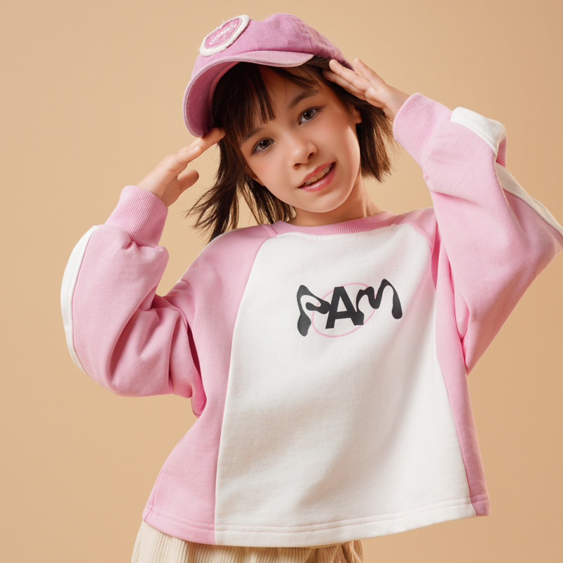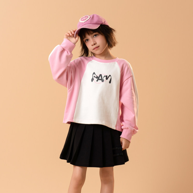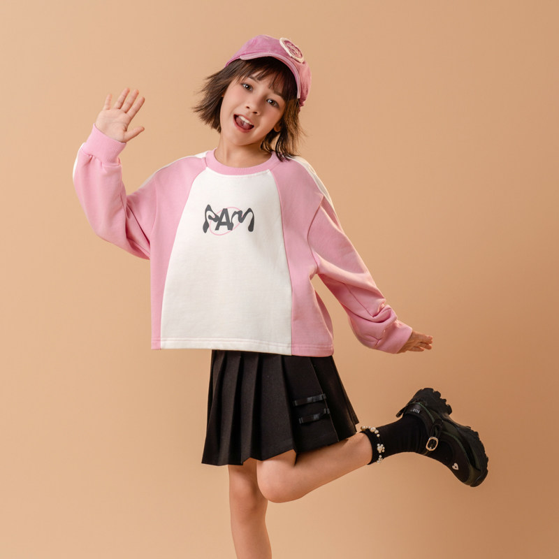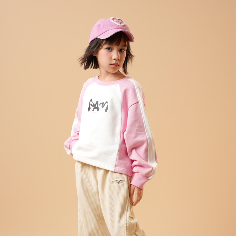 半芭女童卫衣2026春装新款拼色粉色时尚洋气字母印花小女孩上衣