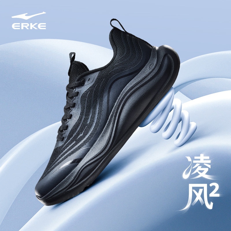 凌风2鸿星尔克跑步鞋男春季新款软底缓震运动鞋黑色轻便公务男鞋