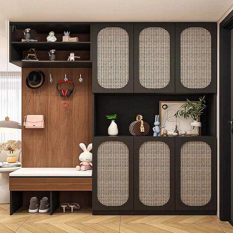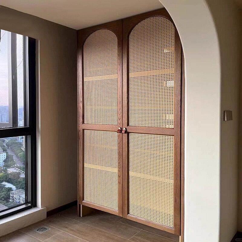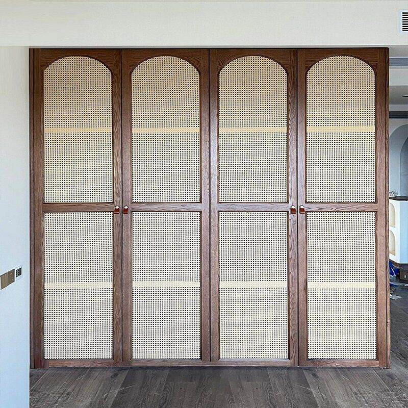 藤编门定制卧室门推拉折叠门客厅实木隔断移门鞋柜透气平开 柜门