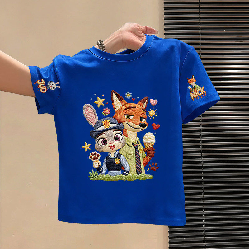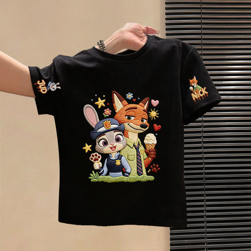 儿童夏季纯棉短袖t恤2026新款疯狂动物城卡通印花男女童洋气上衣