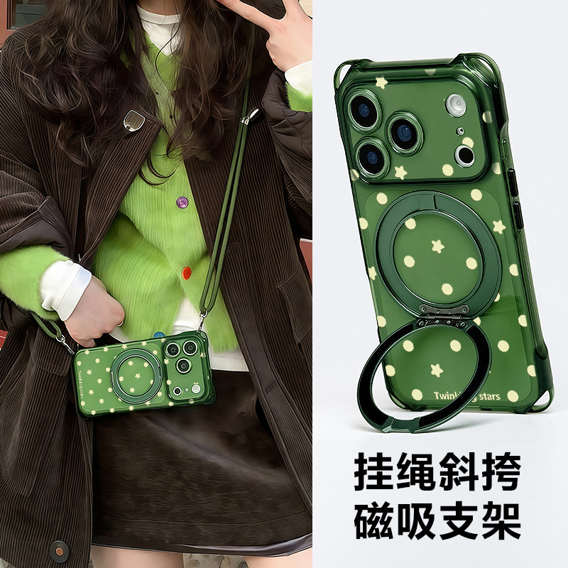 适用iPhone17promax手机壳斜挎带挂绳苹果16pro磁吸支架点保护套15plus全包防摔女14可背挂脖13新款12外2026