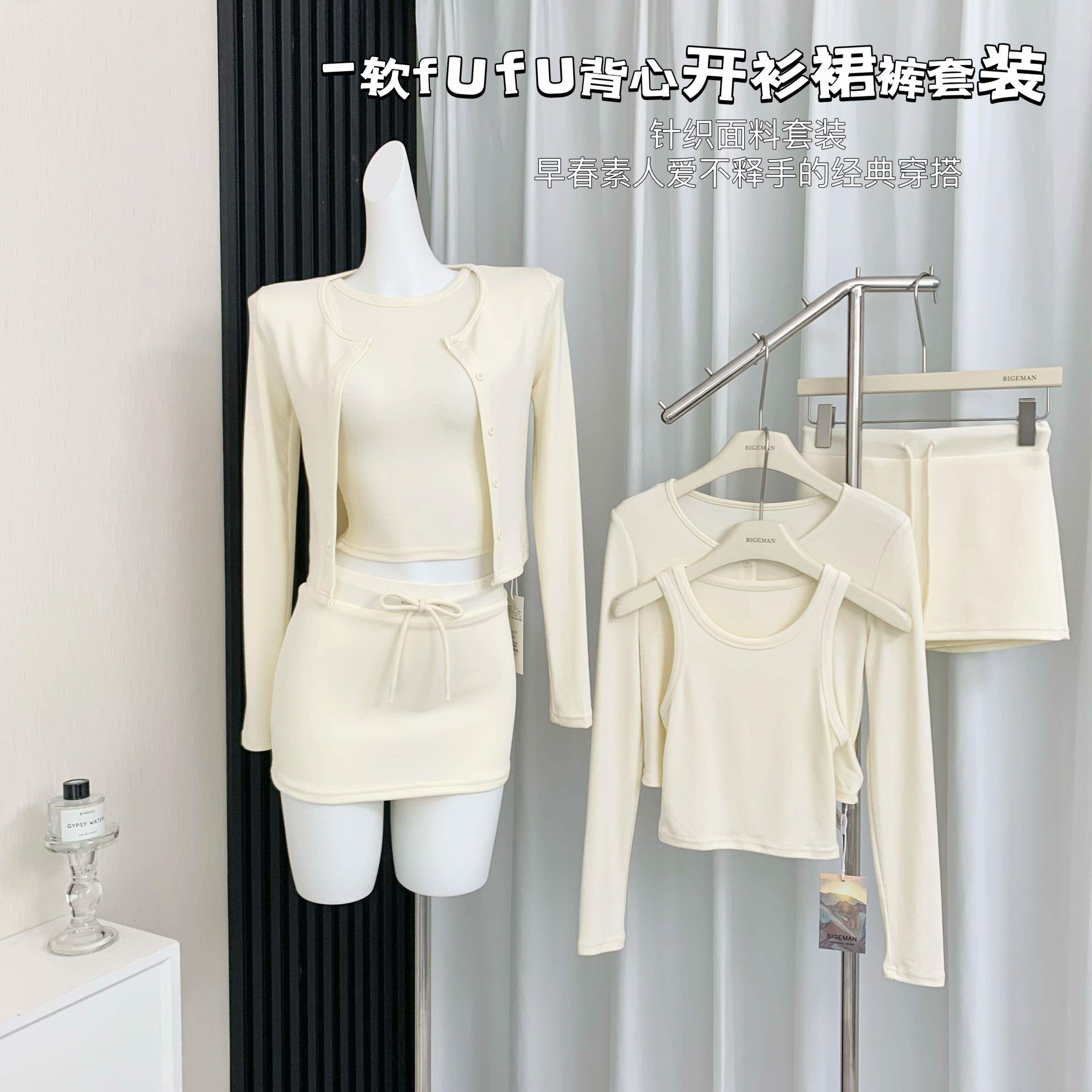 小个子运动风开衫女外套背心上衣包臀短裙羽毛球网球户外三件套装