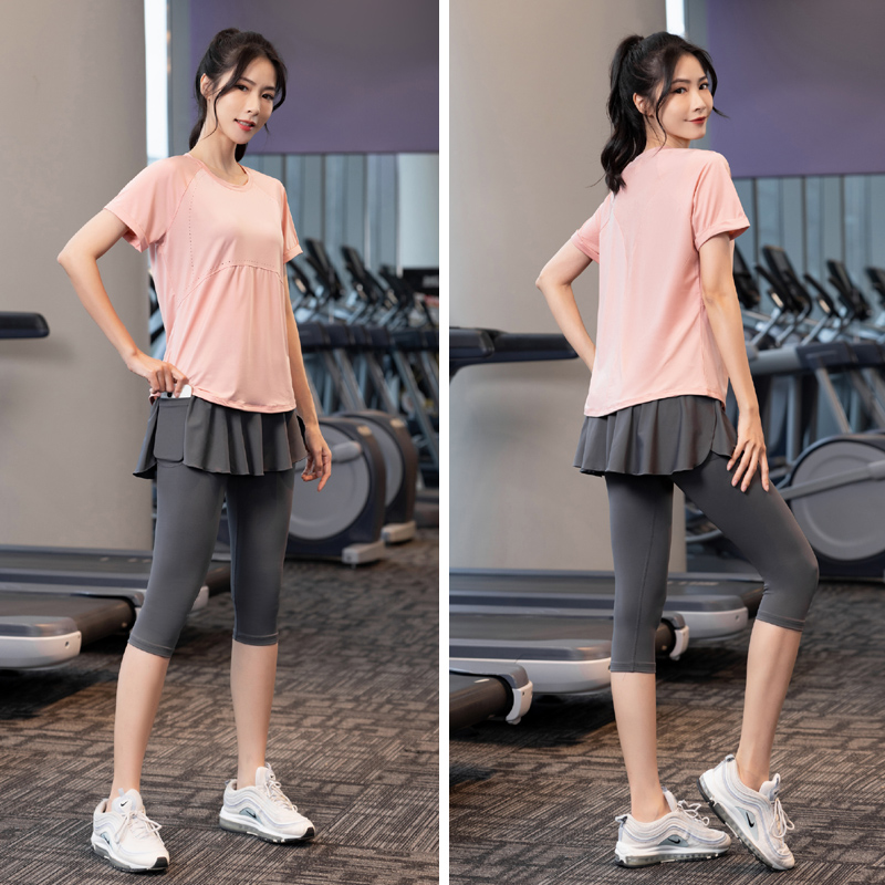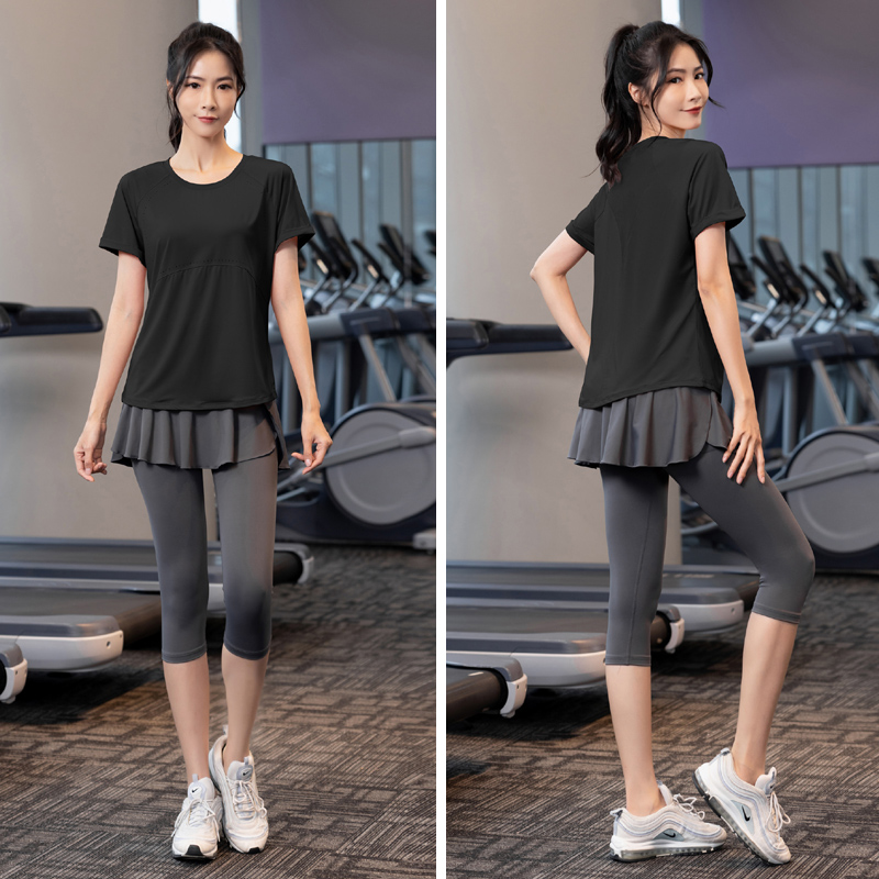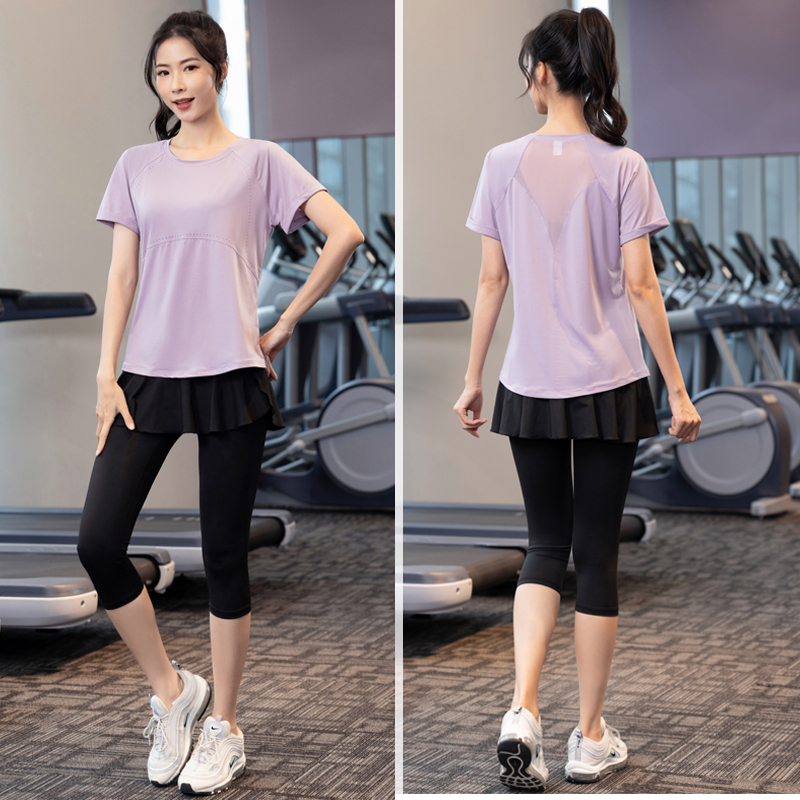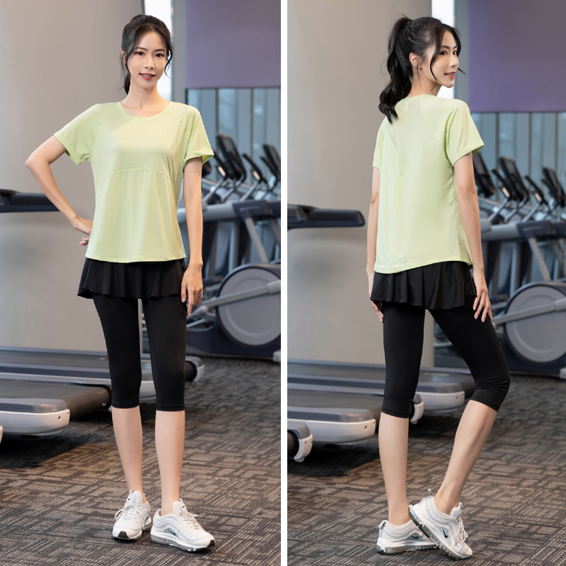 夏季薄款大码速干衣专业健身女200斤胖mm瑜伽服运动短袖跑步套装