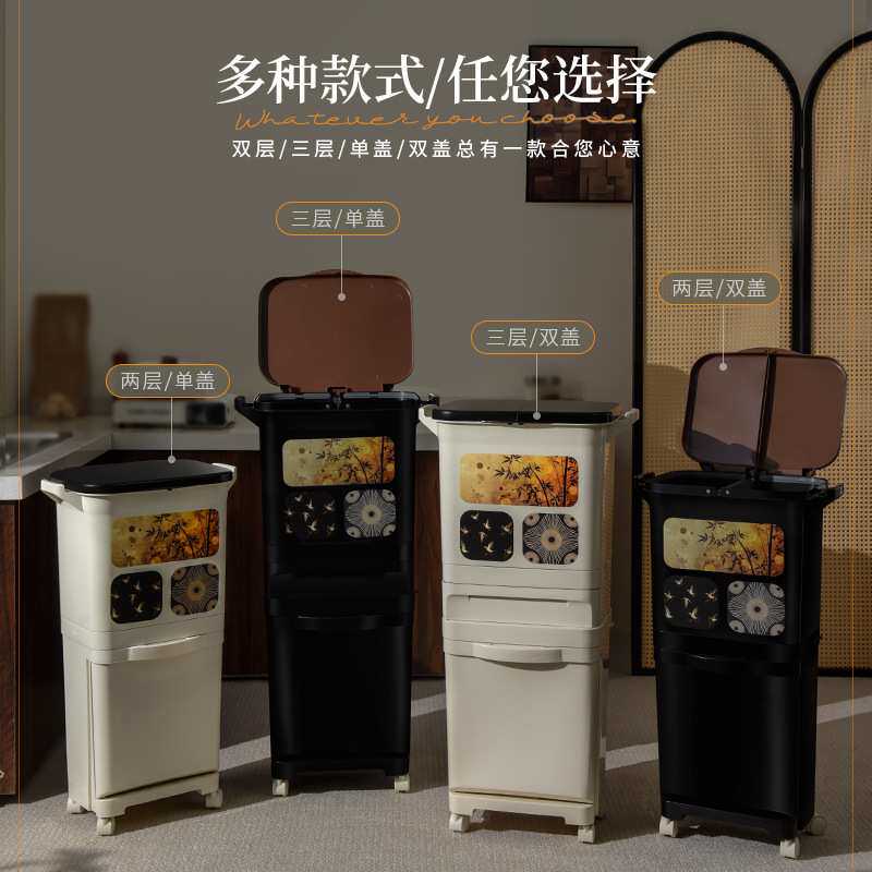 厨房垃圾桶干湿分离大容量免弯腰置物架分类大号塑料多功能收纳桶