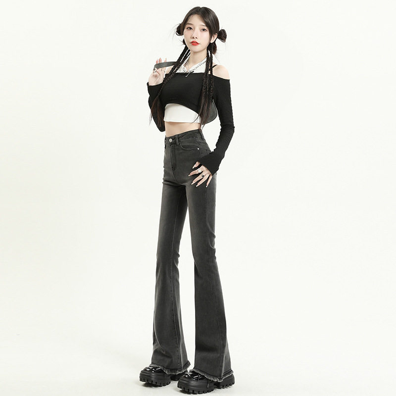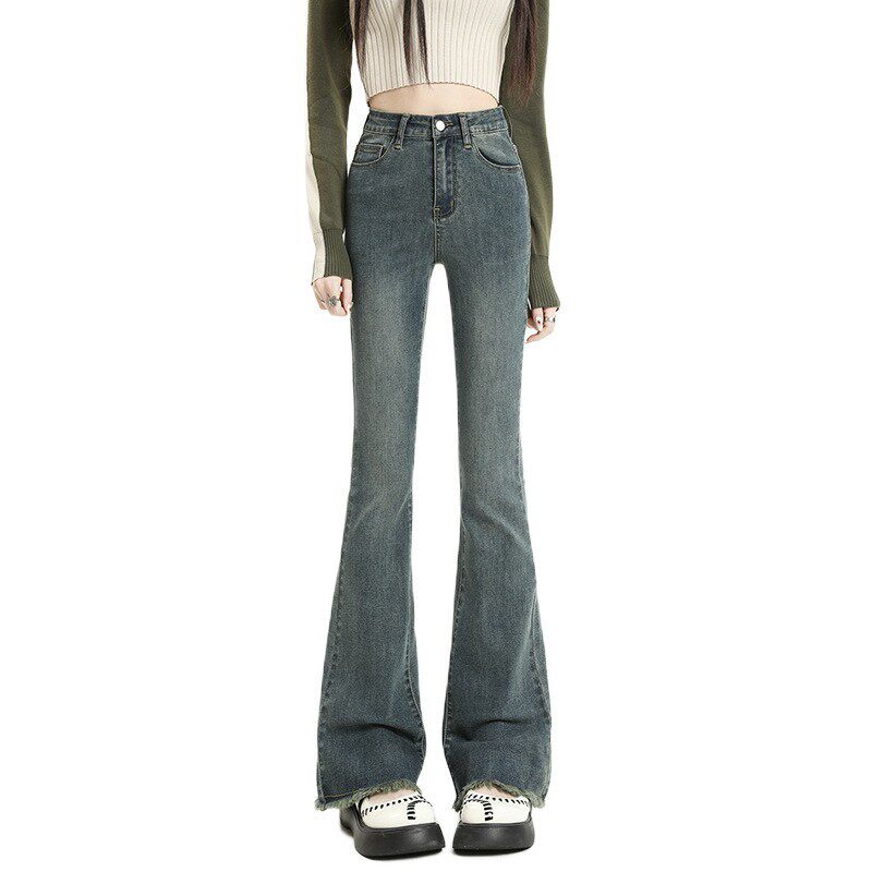 微喇叭牛仔裤女夏季新款修身高腰显瘦弹力小个子毛边喇叭裤子女款