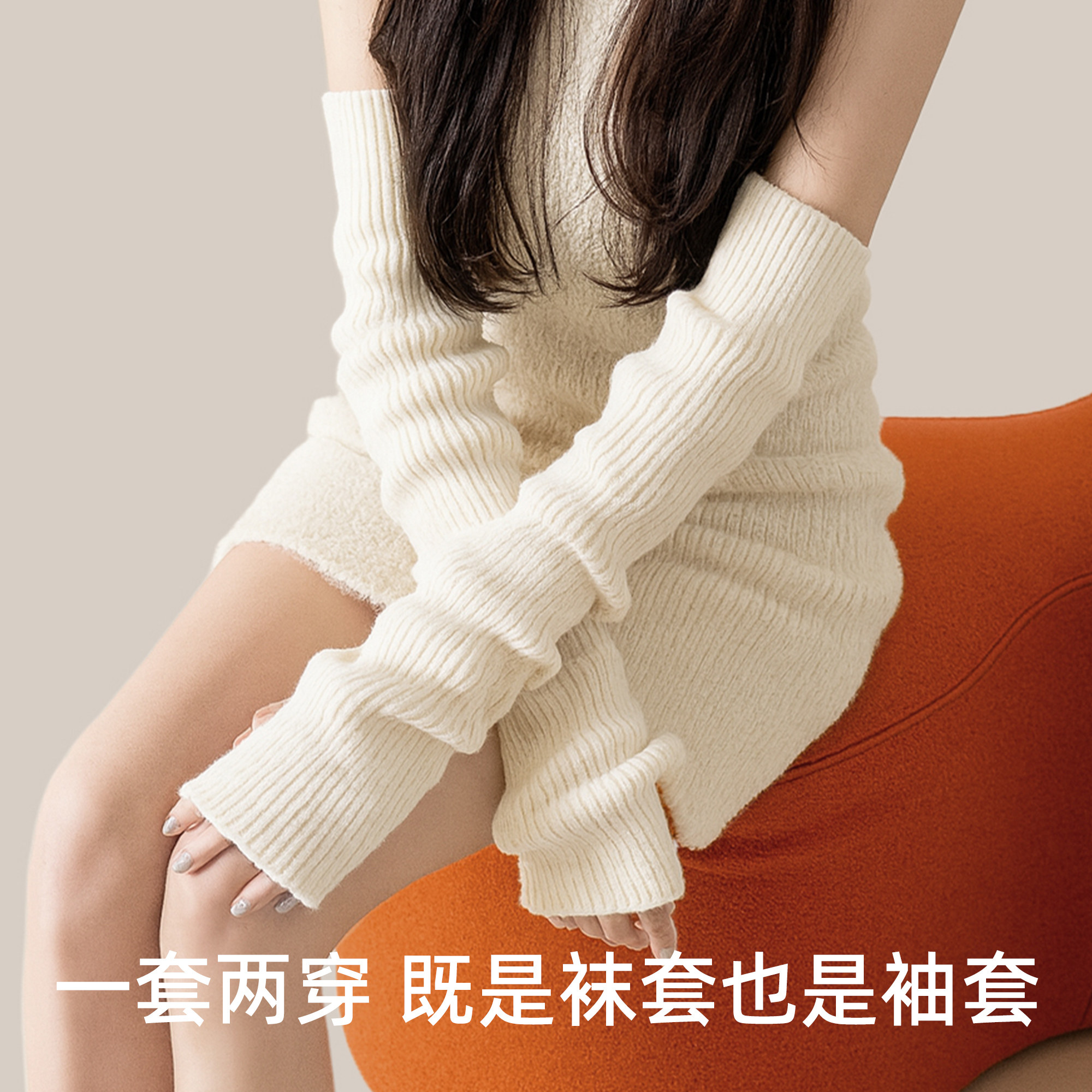 瑜伽踩脚堆堆袜套女冬季针织腿套白色护小腿袜子加厚长筒袜普拉提