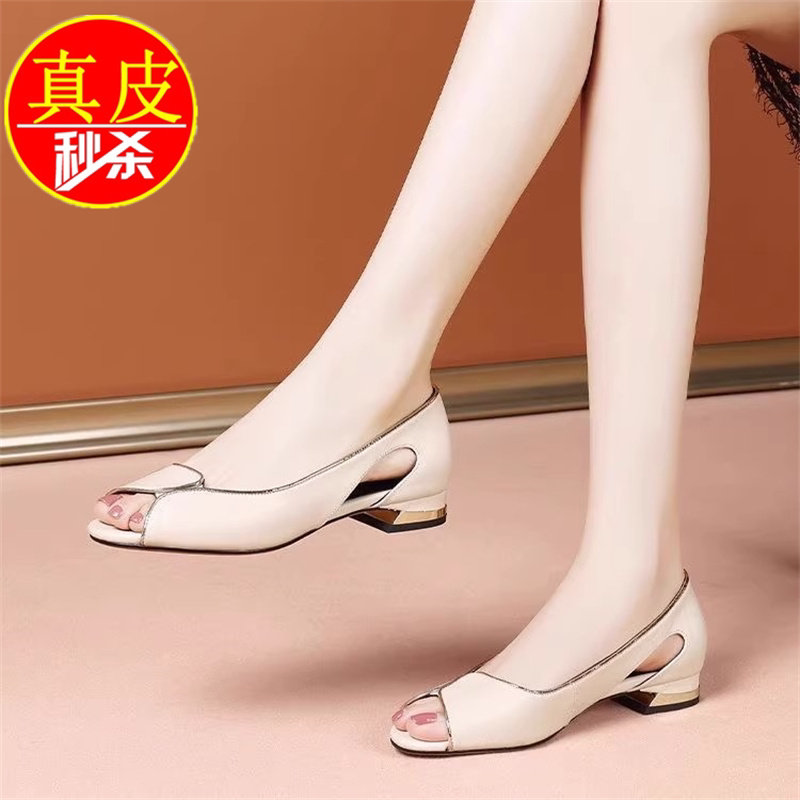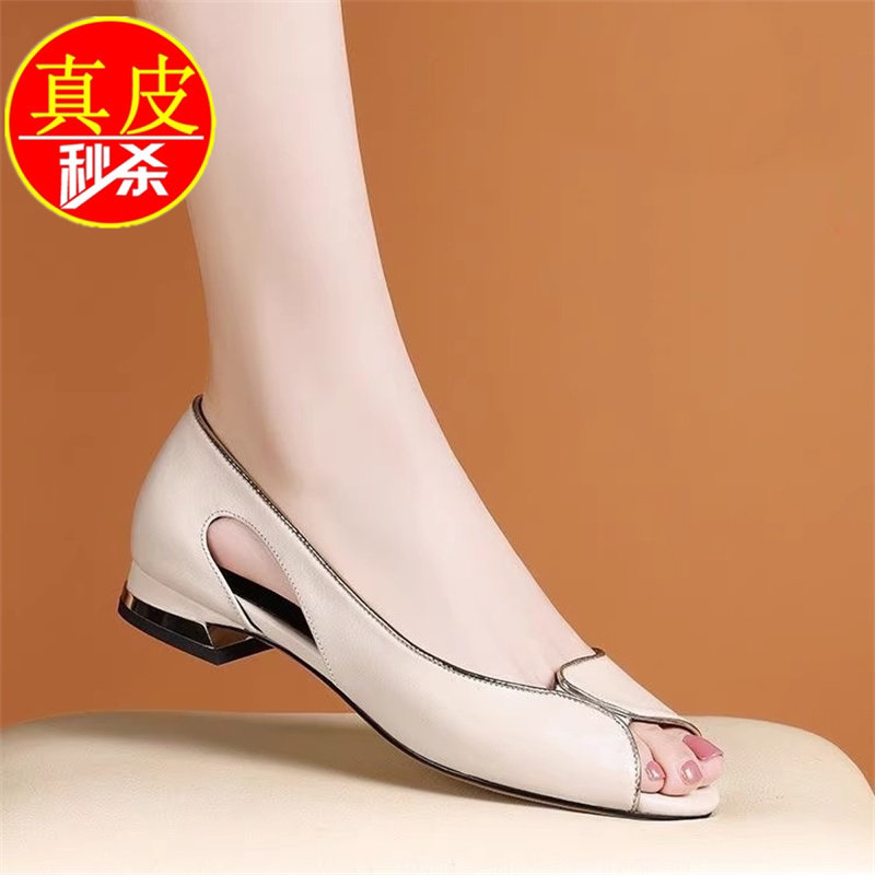 品牌撤柜真皮鱼嘴凉鞋女平跟软面软底鞋子露趾夏季女鞋百搭时尚