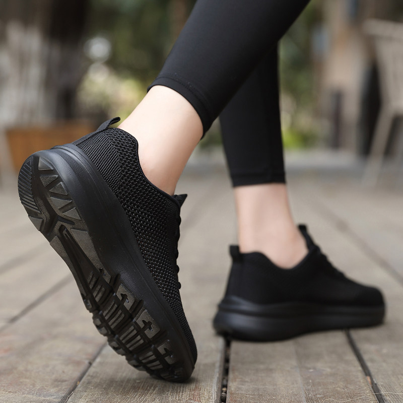 黑色工作鞋女久站不累脚软底女鞋夏季透气网鞋女网面薄款运动鞋子