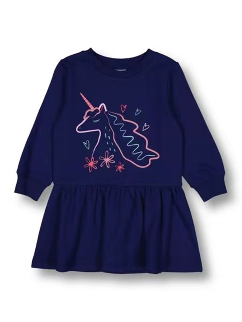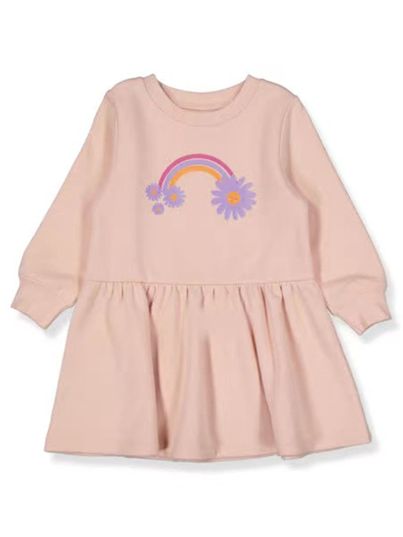 去西班牙 1-7岁春装女童棉拉绒彩虹小马长袖连衣裙休闲卫衣裙子鑫