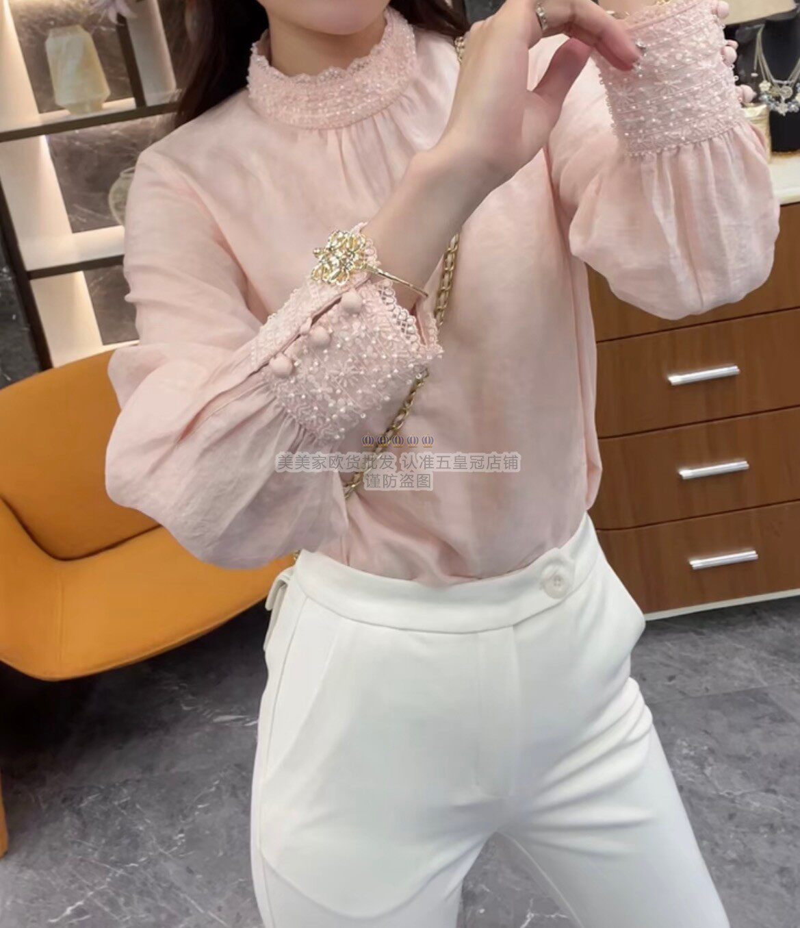 欧洲站2026早春新款重工钉珠花朵立领长袖衬衫气质薄款上衣衬衣