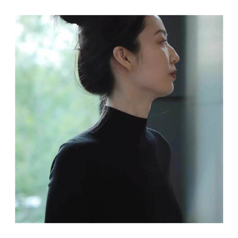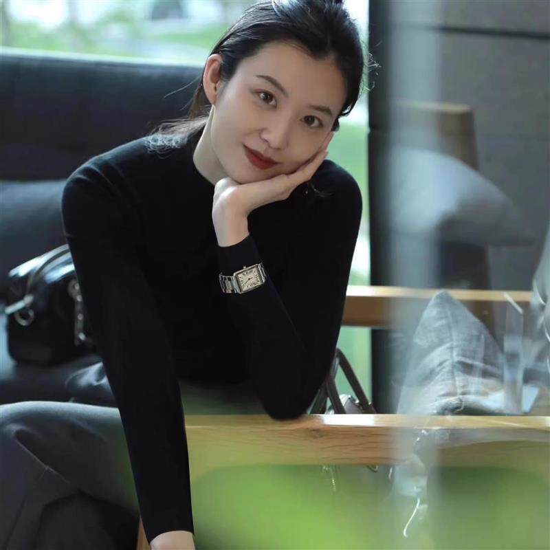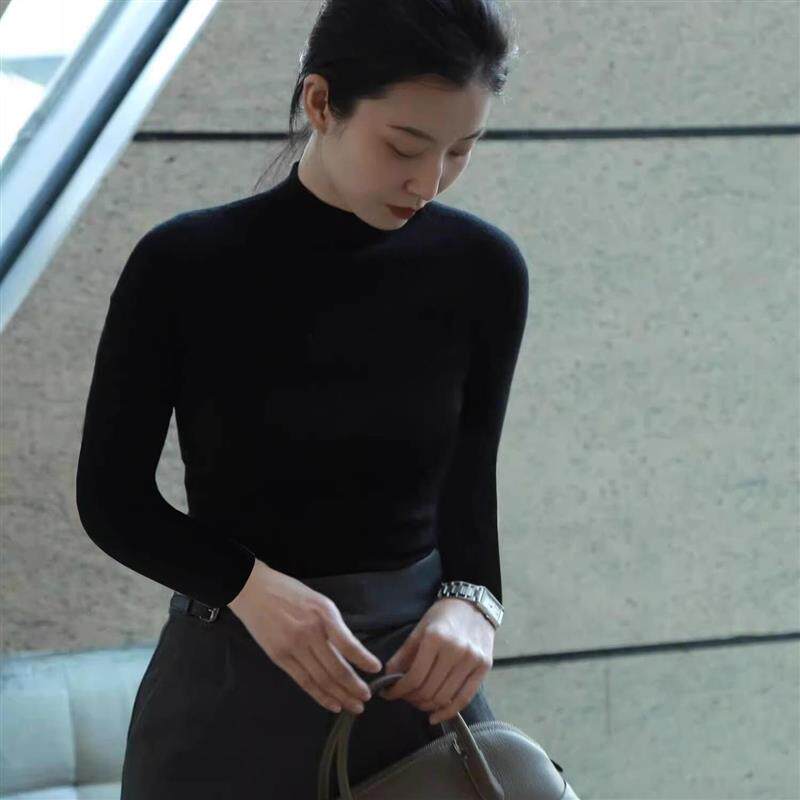 法式黑色半高领打底衫女款秋冬简约高级感正肩修身中领毛衣针织衫