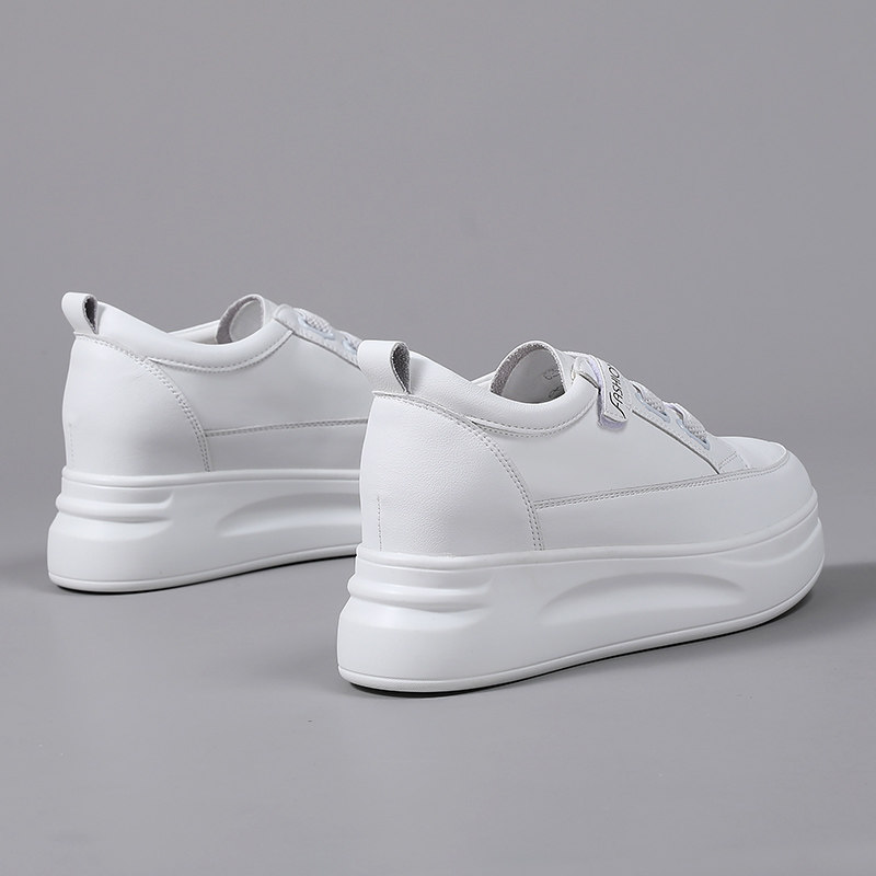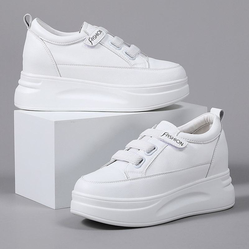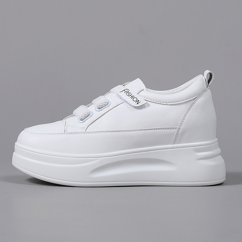 真皮小白鞋女2025新款春季魔术贴34码内增高女鞋小个子厚底增高鞋