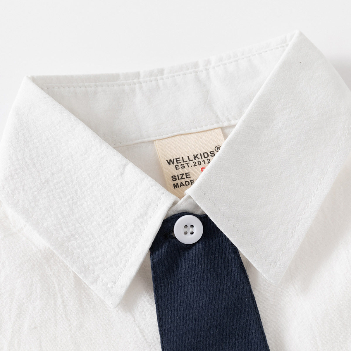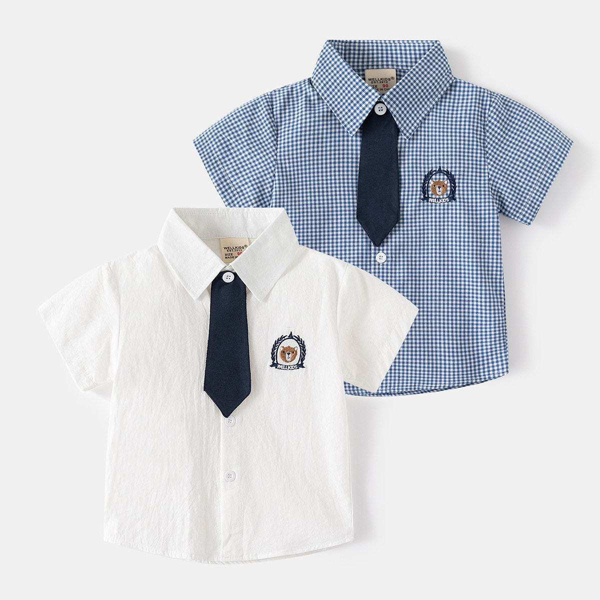 二折清仓特价撤柜童装男童短袖衬衫领带刺绣洋气时尚衬衣