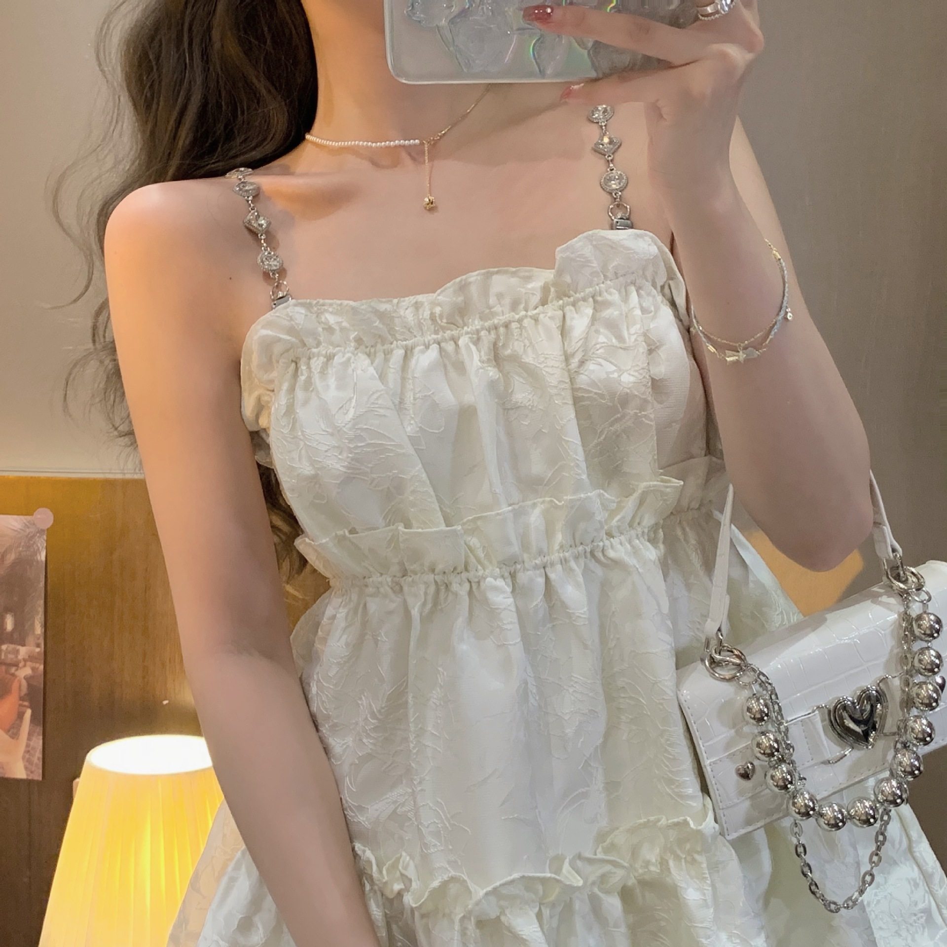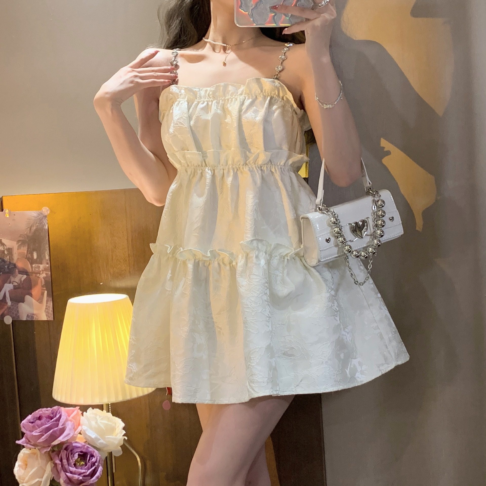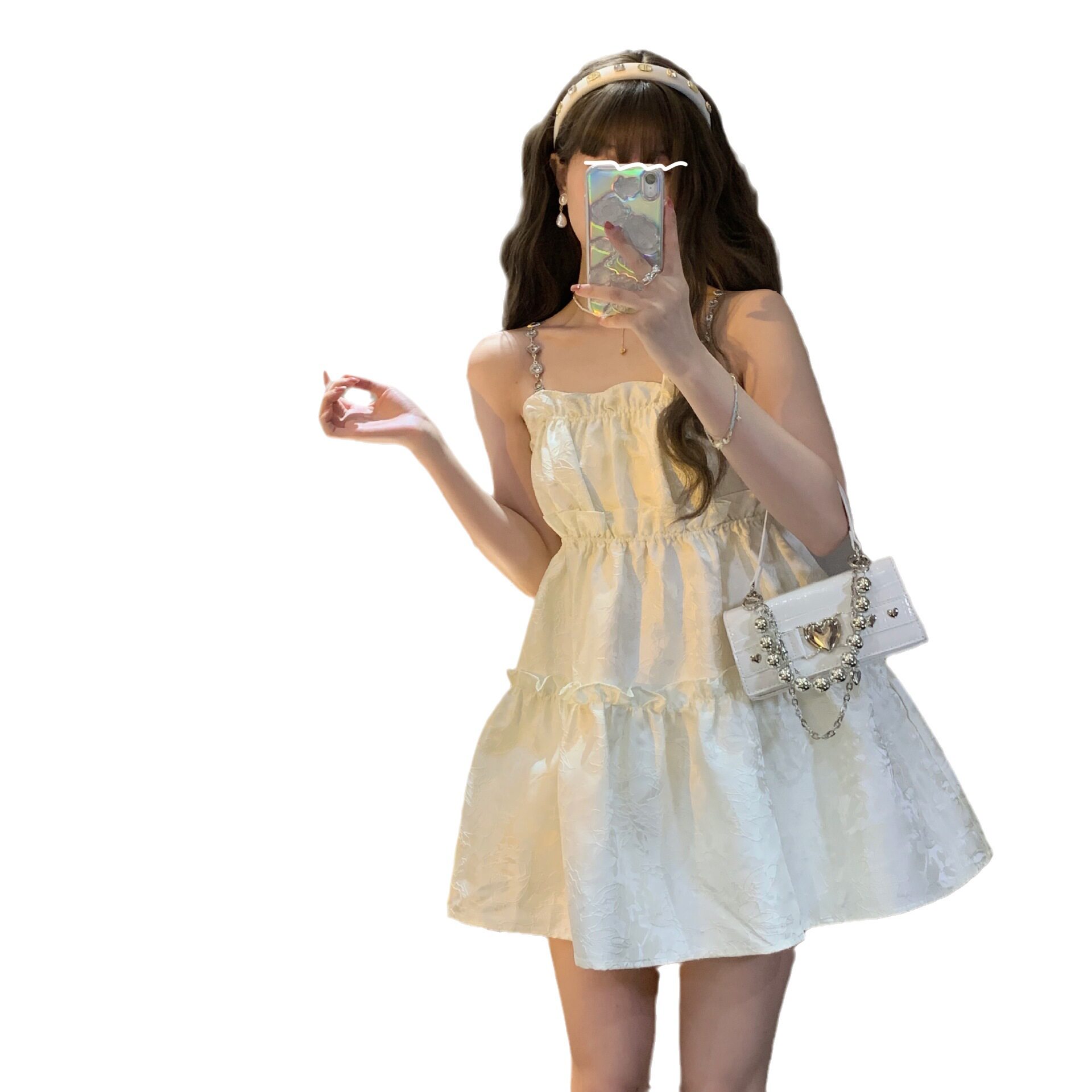 吊带连衣裙女夏季设计感小众蓬蓬裙宽松法式a字短款小个子短裙子