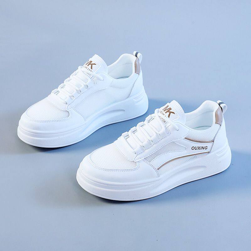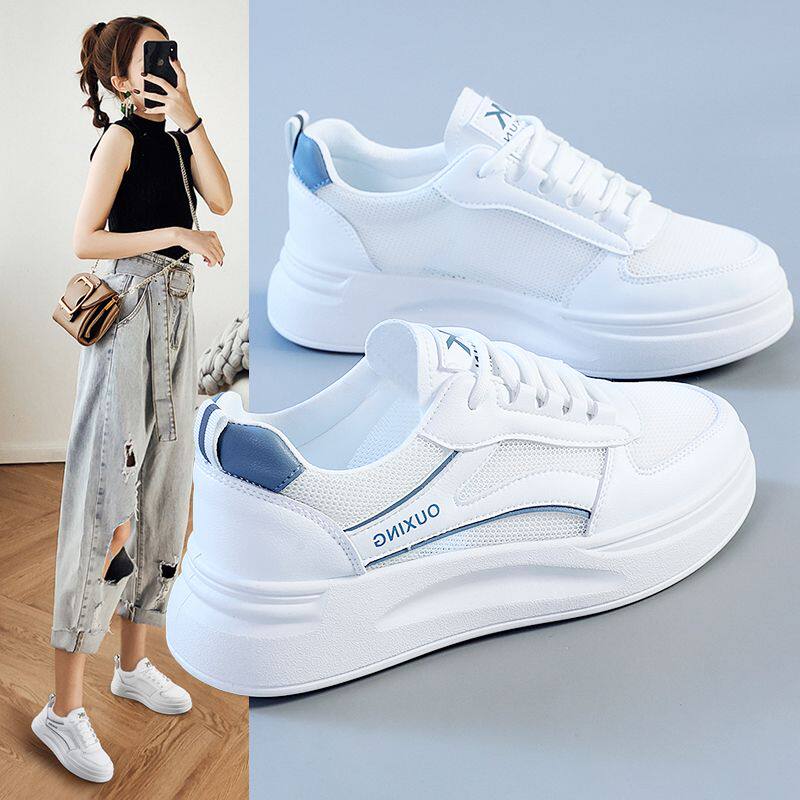 透气小白鞋百搭休闲女鞋内小个子配裙子隐形显高网面板鞋