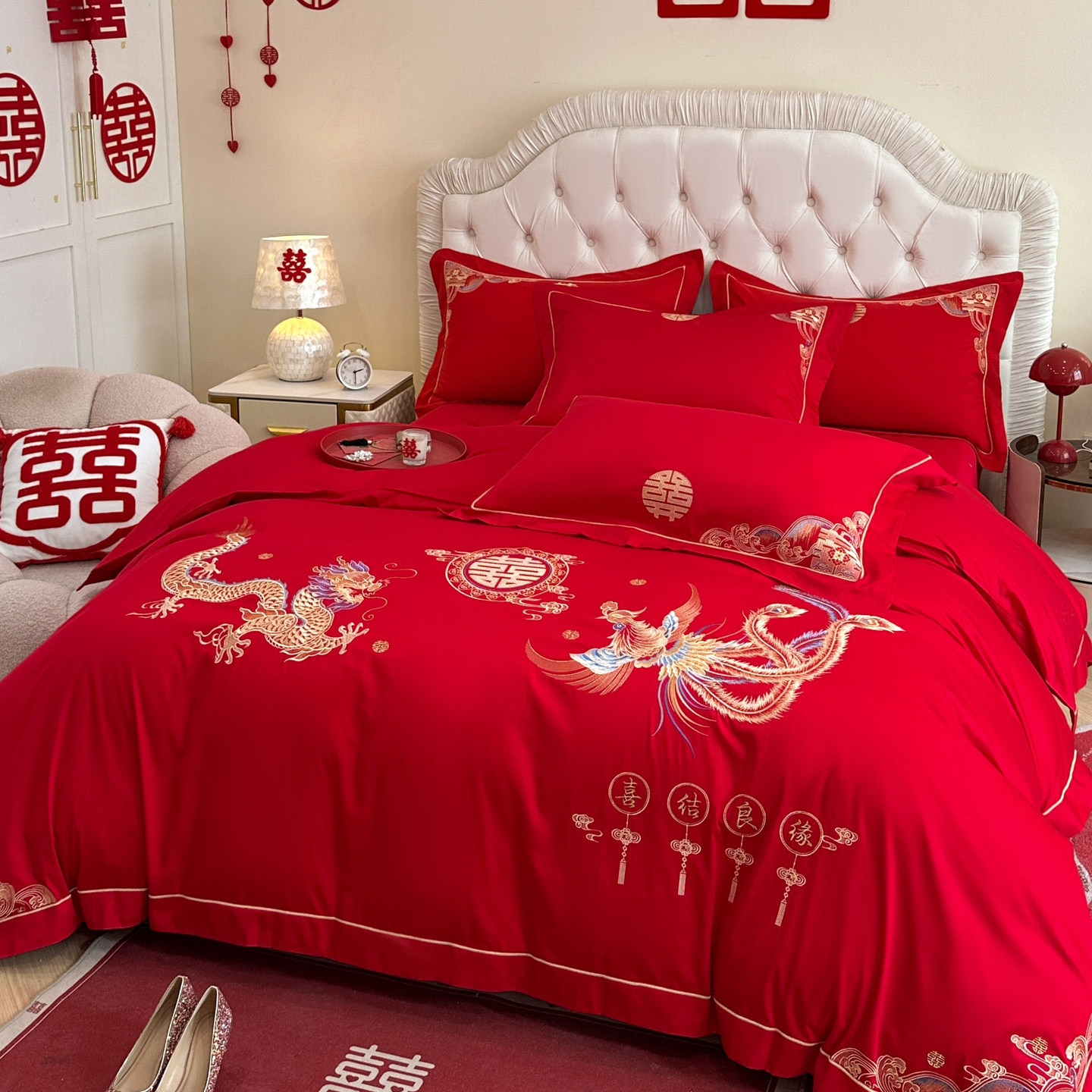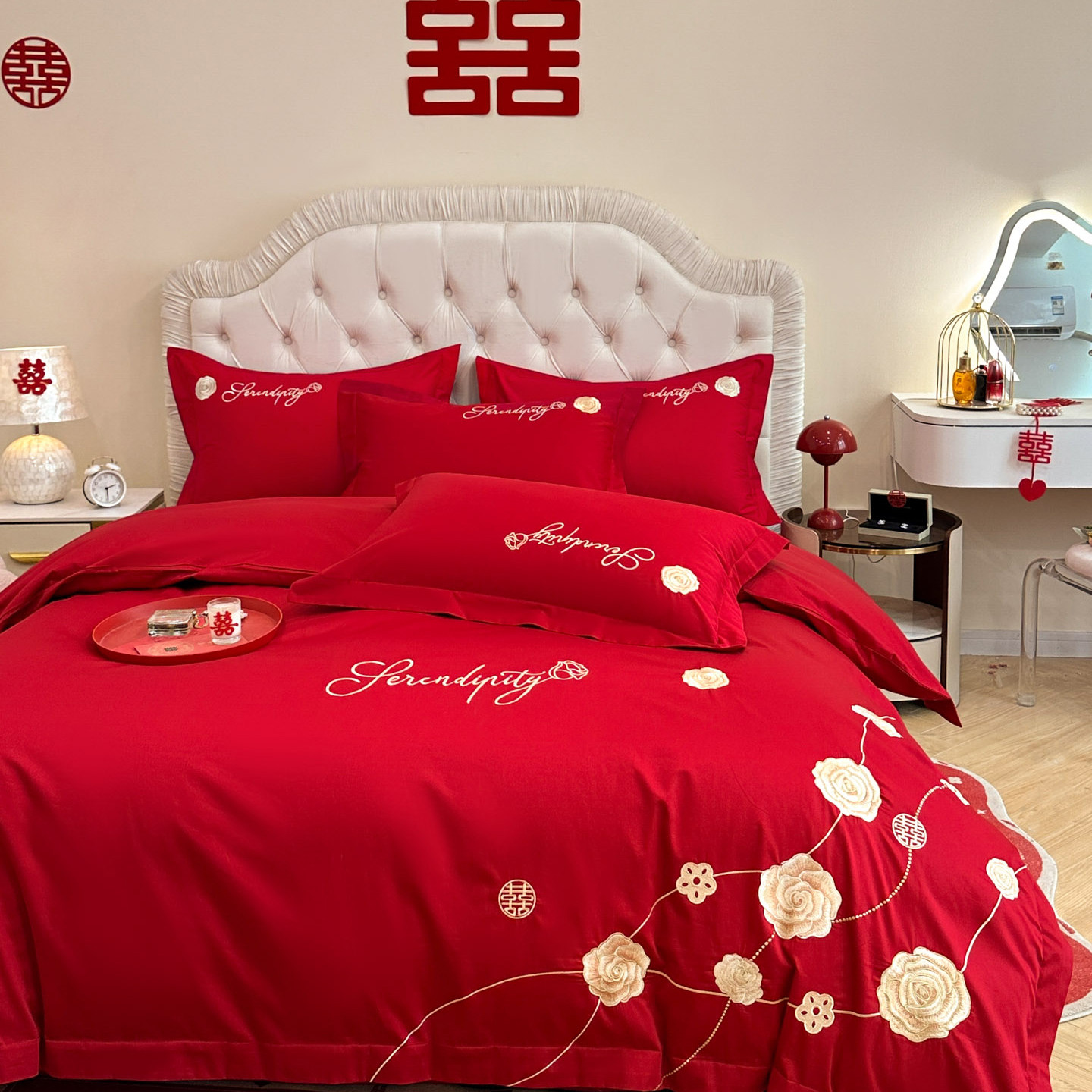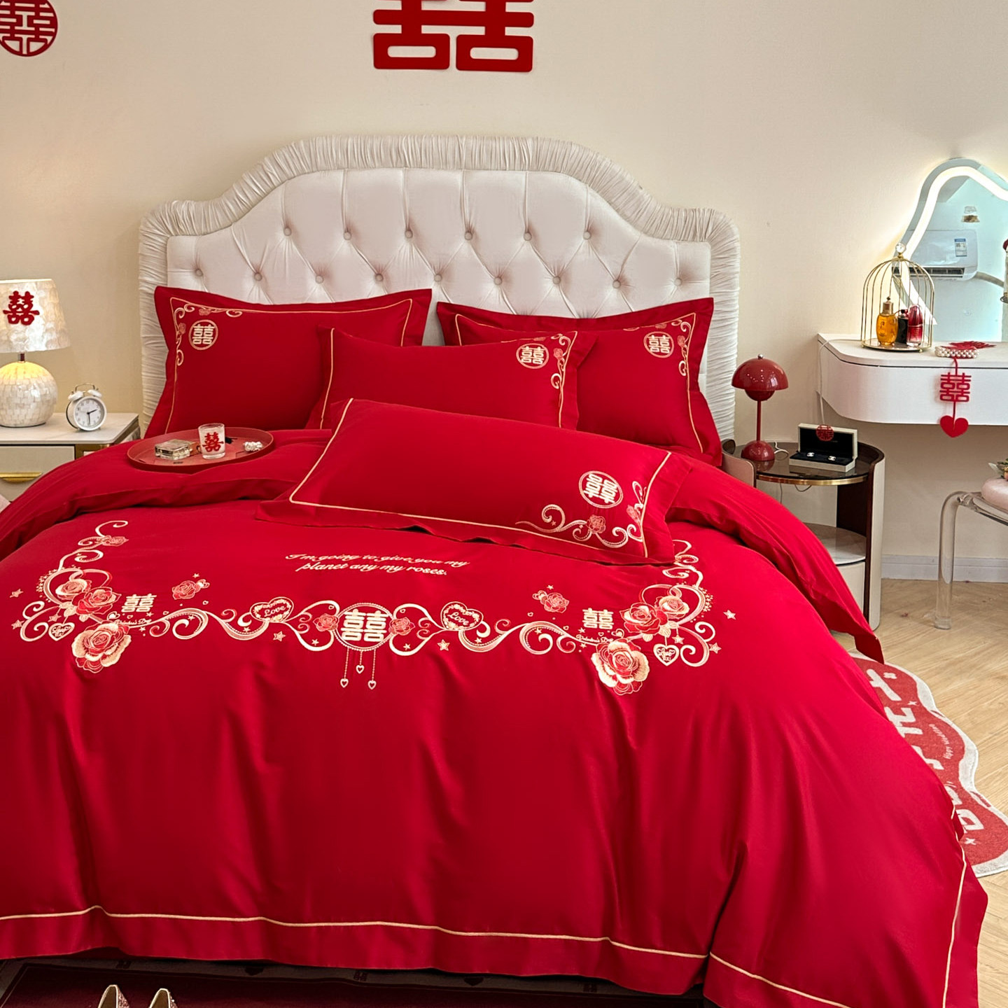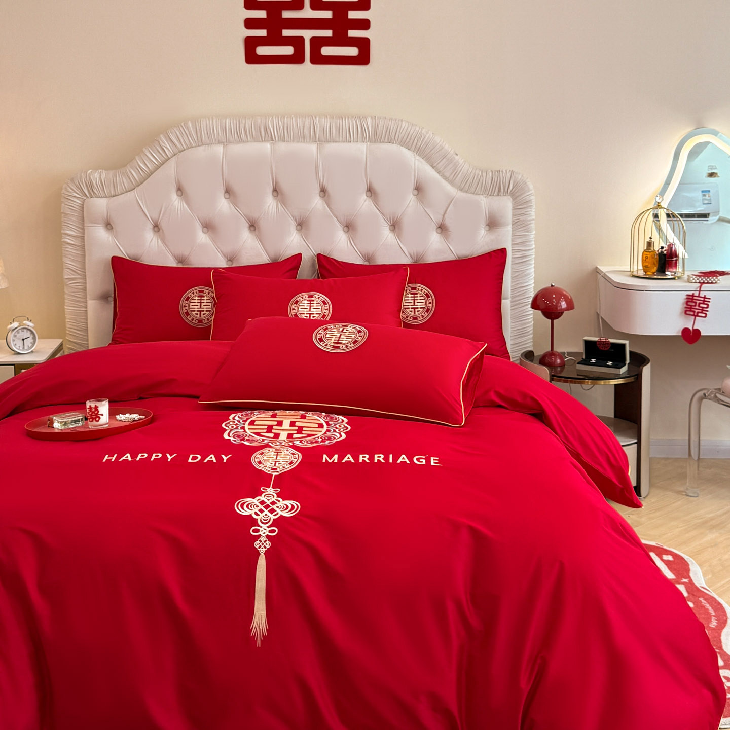 大红色结婚四件套婚家新婚床上用品简约婚庆被套床单日常可用年轻