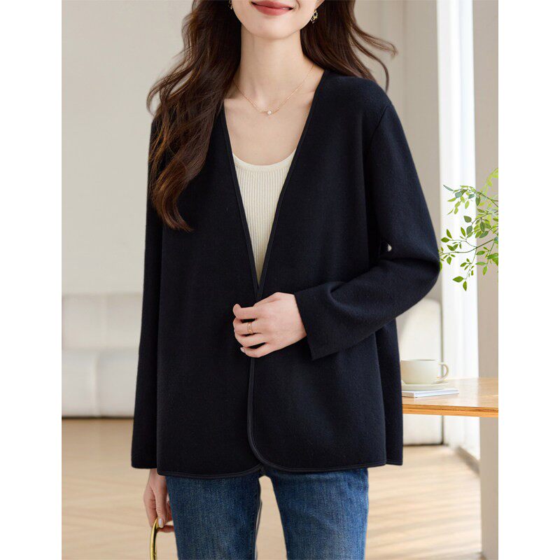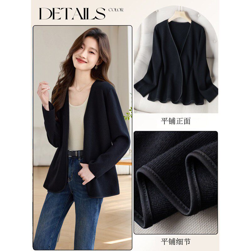 2026早春新款漂亮休闲黑色基础款针织开衫时尚洋气通勤披肩外套女
