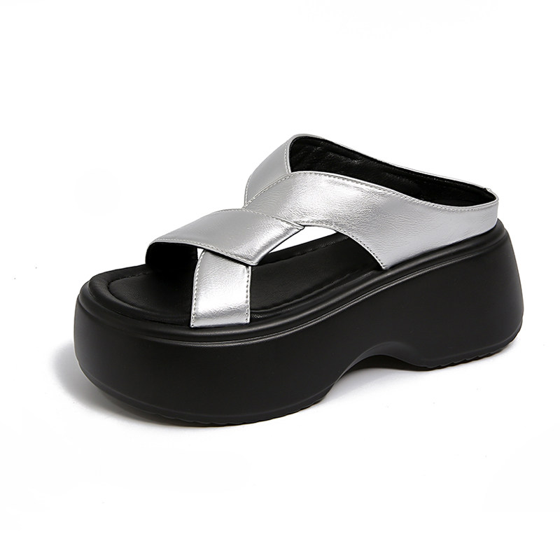 311线报网描述:银色厚底凉拖鞋女外穿高级感防滑配裙子沙滩