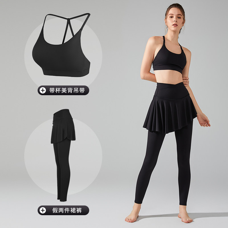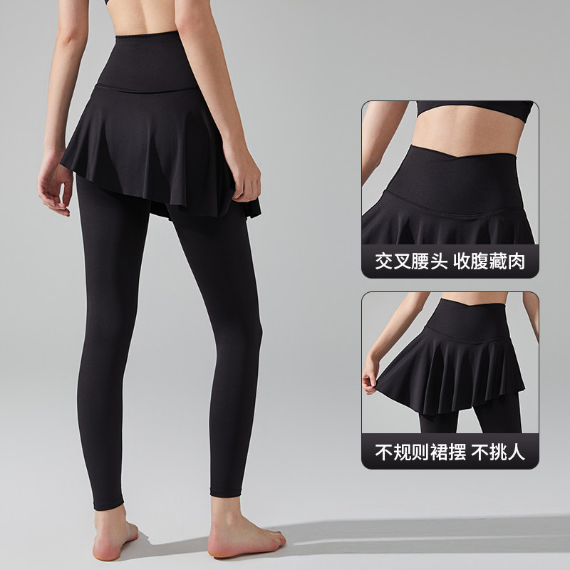 假两件运动裙裤女大码高腰收腹防走光跑步健身裤羽毛球瑜伽裤春夏