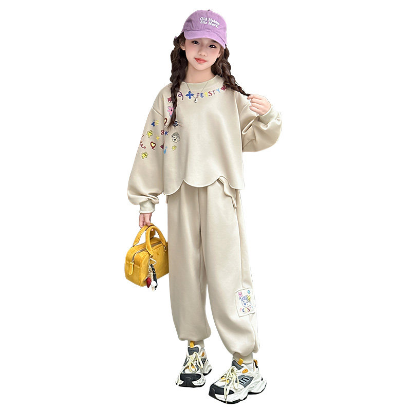 女童春装休闲套装2026新款洋气春秋圆领卫衣初中生女孩运动两件套