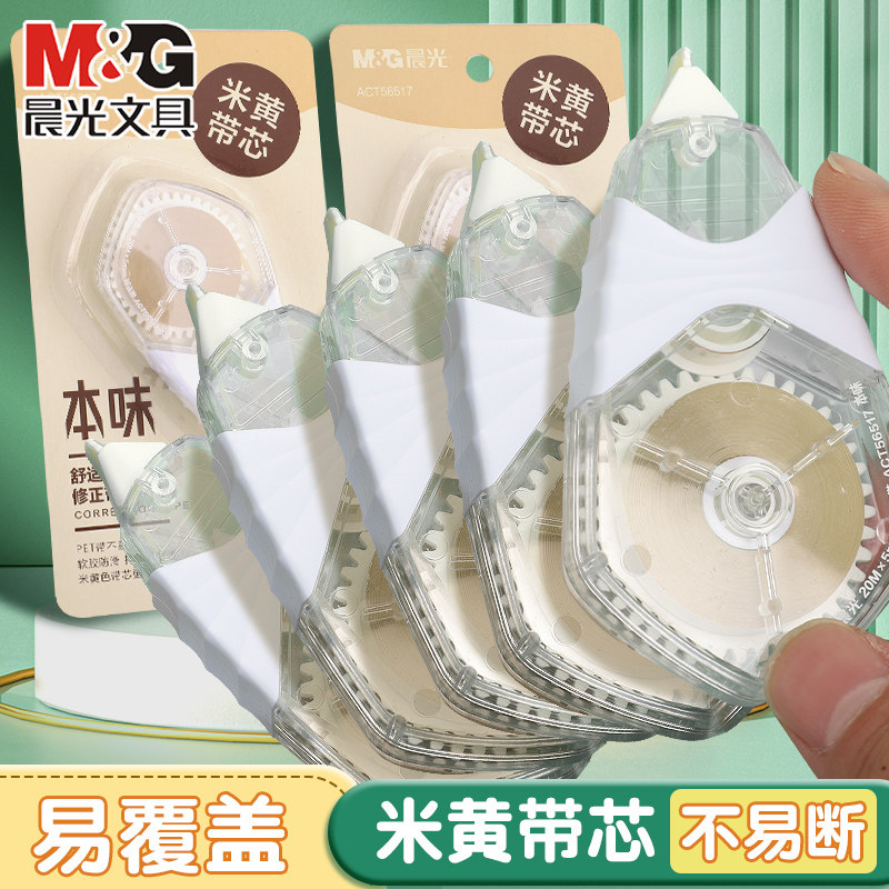 晨光本味米黄色修正带原纸色隐形涂改带大容量初中小学专用实惠装