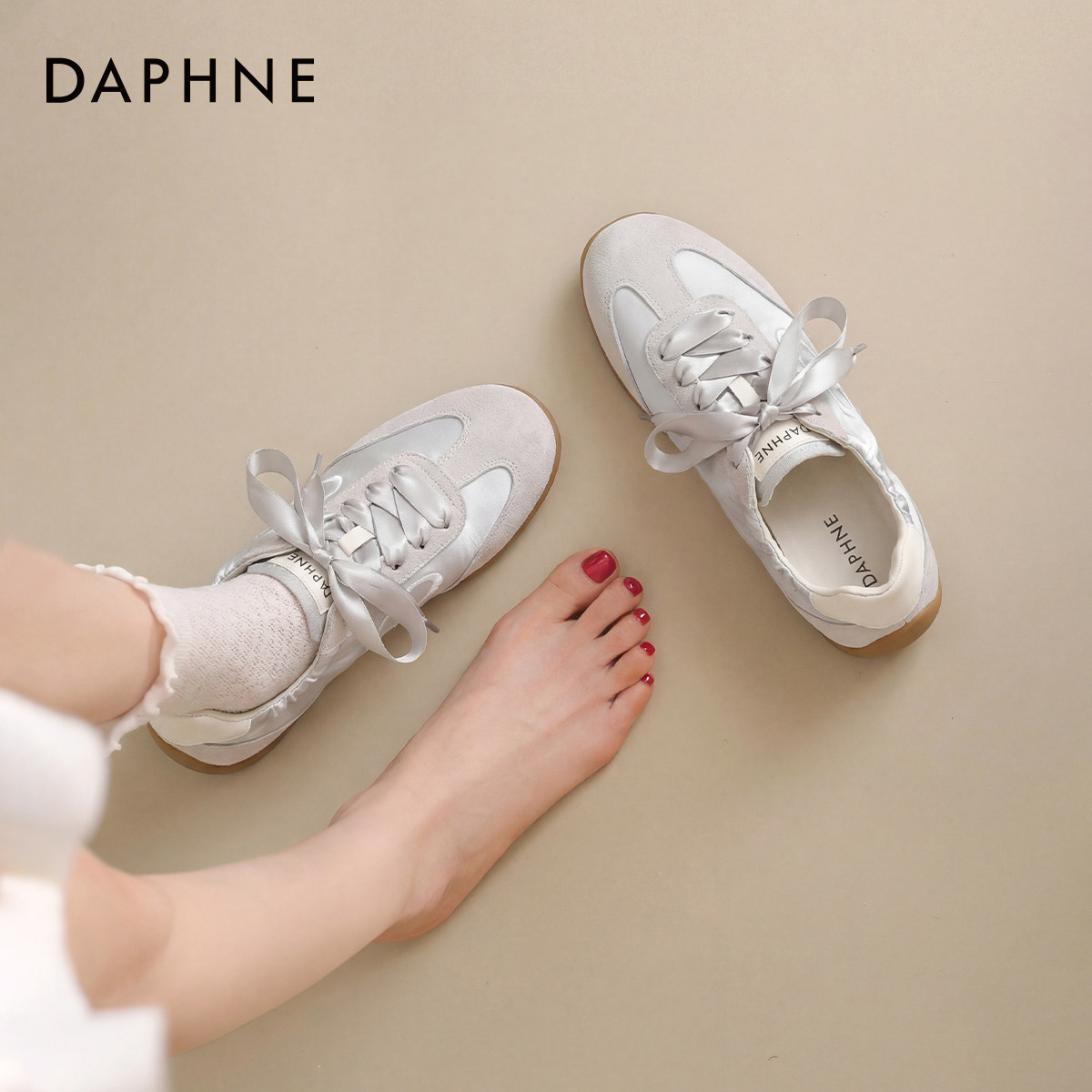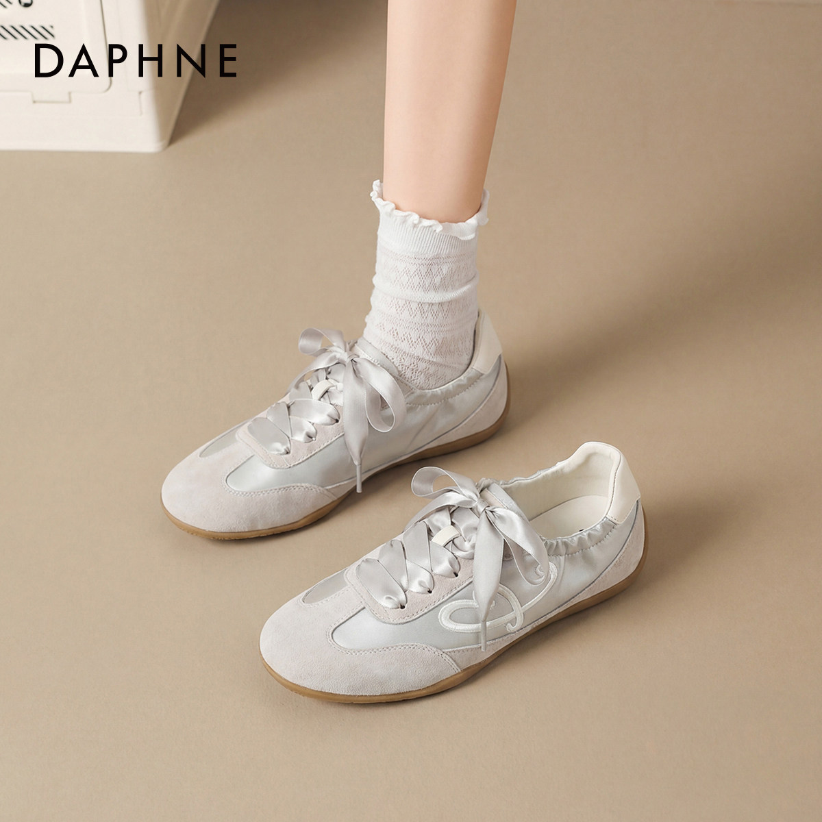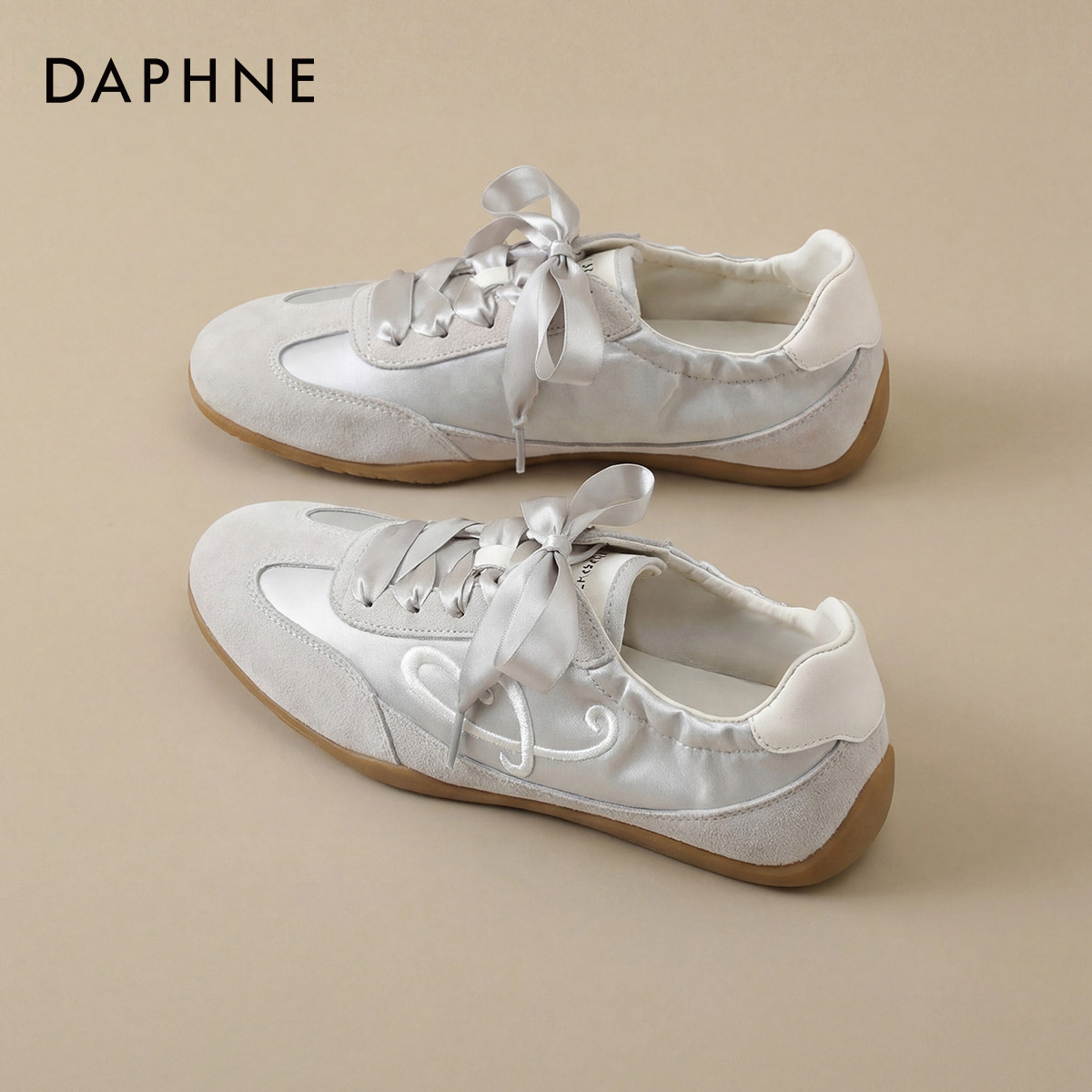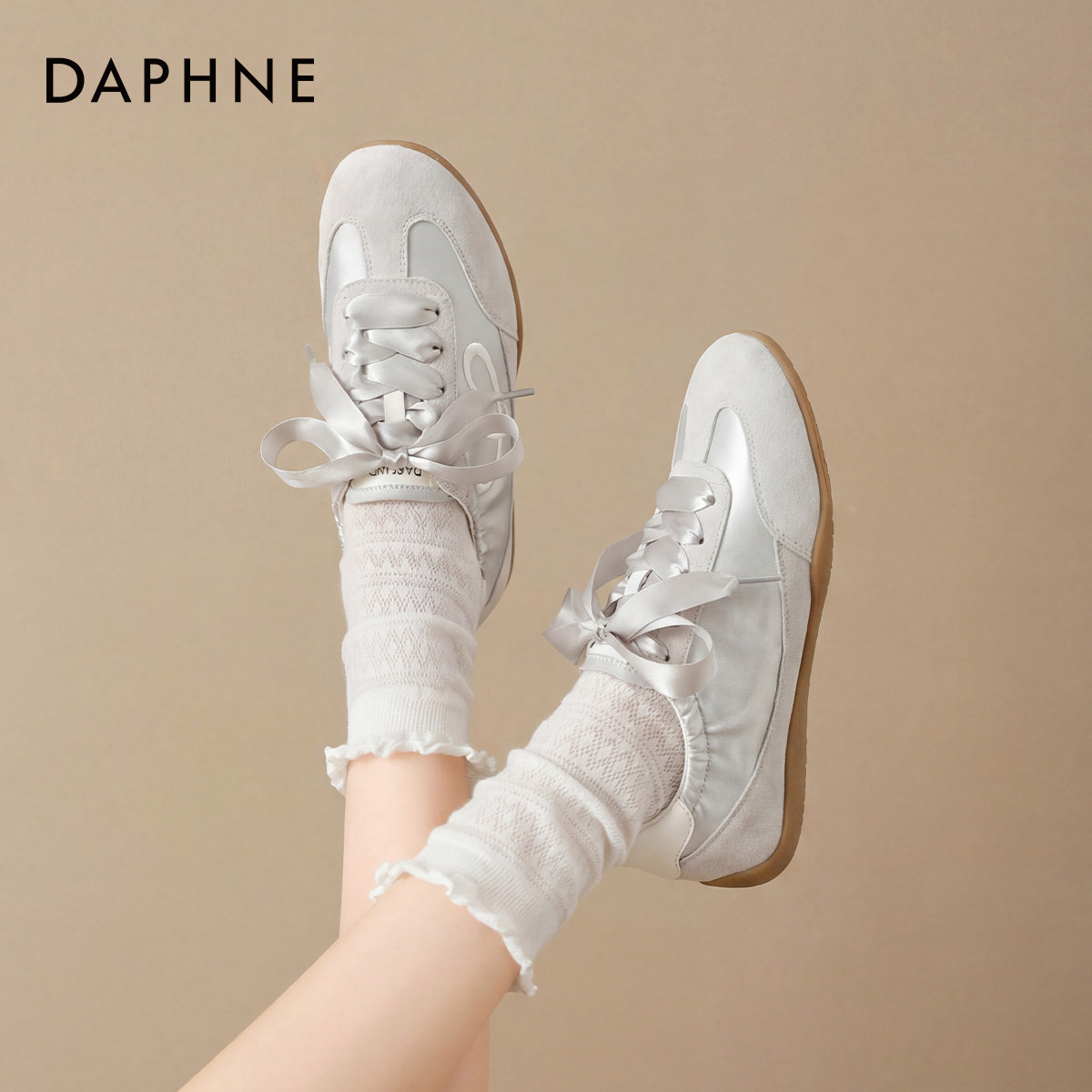 达芙妮银色芭蕾德训鞋女款2026新款复古平底鞋板鞋子运动休闲女鞋