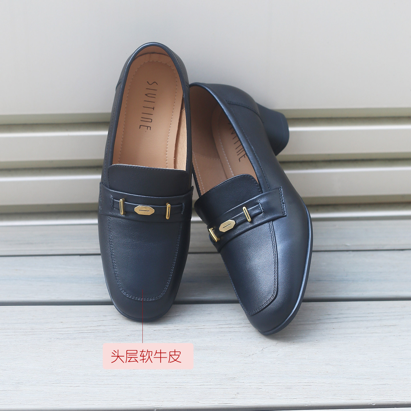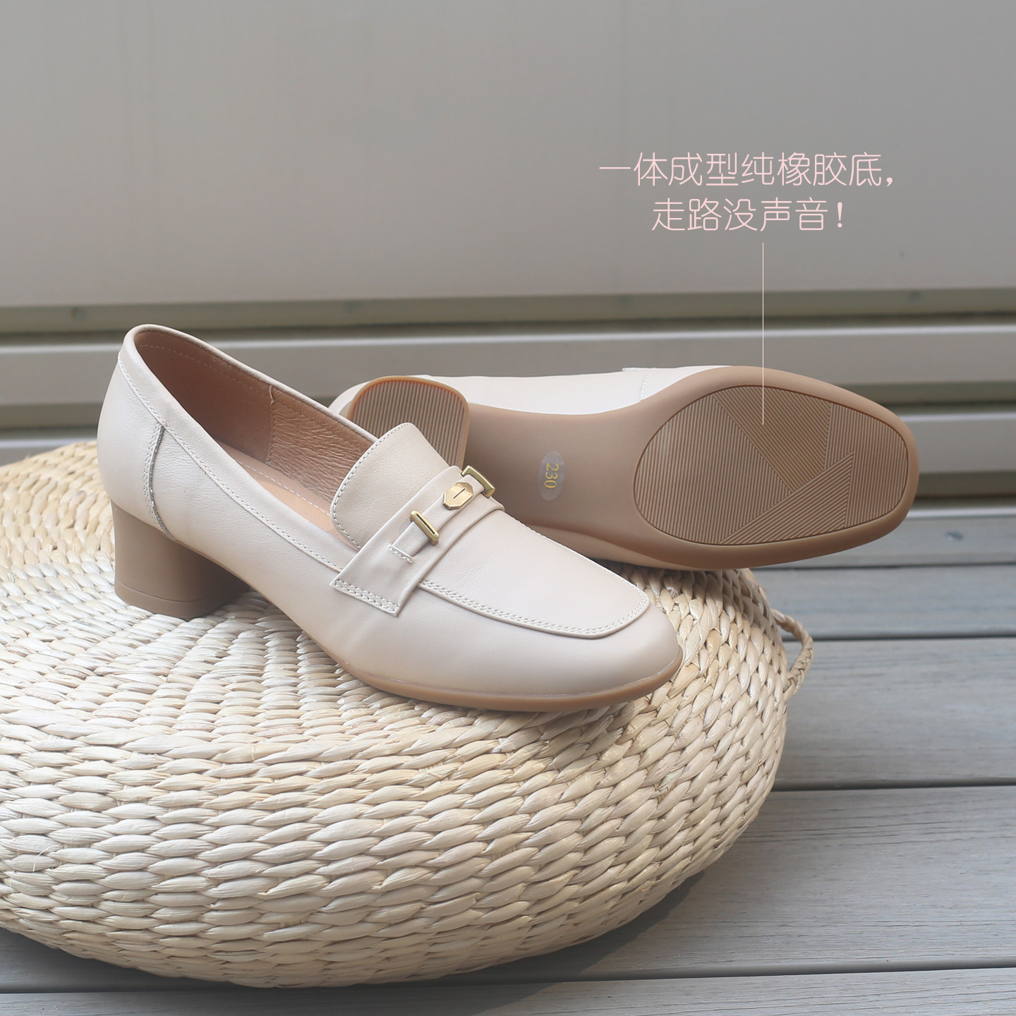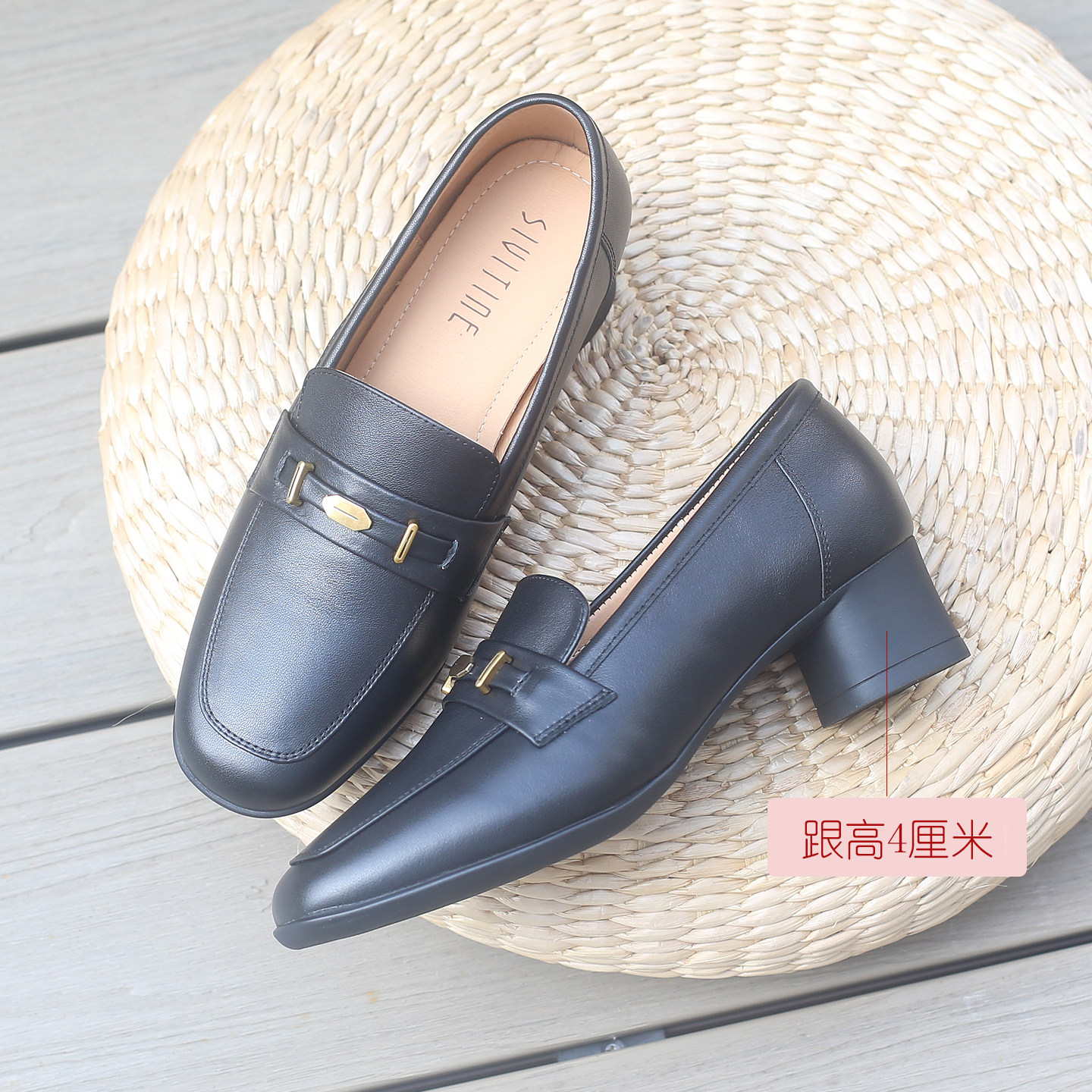 上班不累脚乐福鞋粗跟单鞋女2026春新款软皮软底真皮女鞋中跟方头