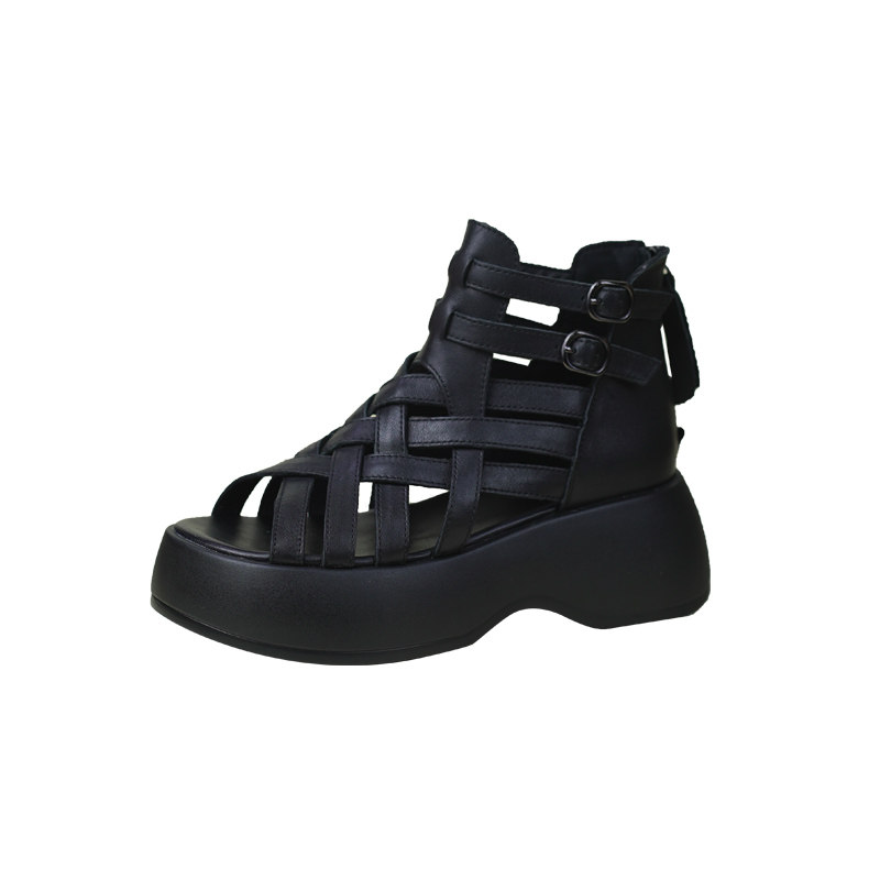 2026夏新款真皮厚底凉鞋女外穿时尚高级感小个子增高超火罗马凉鞋