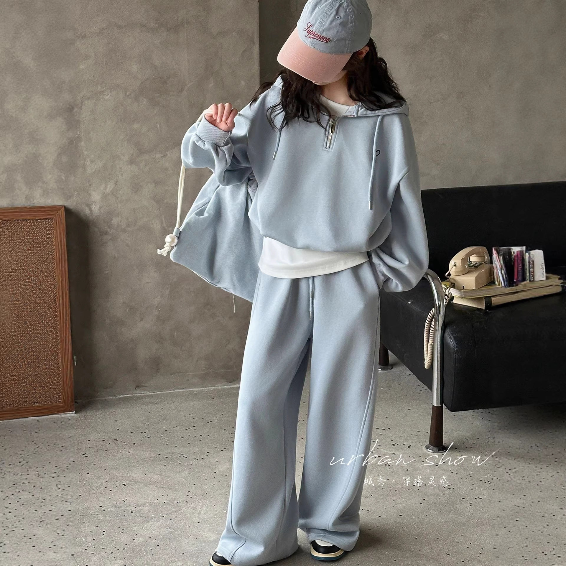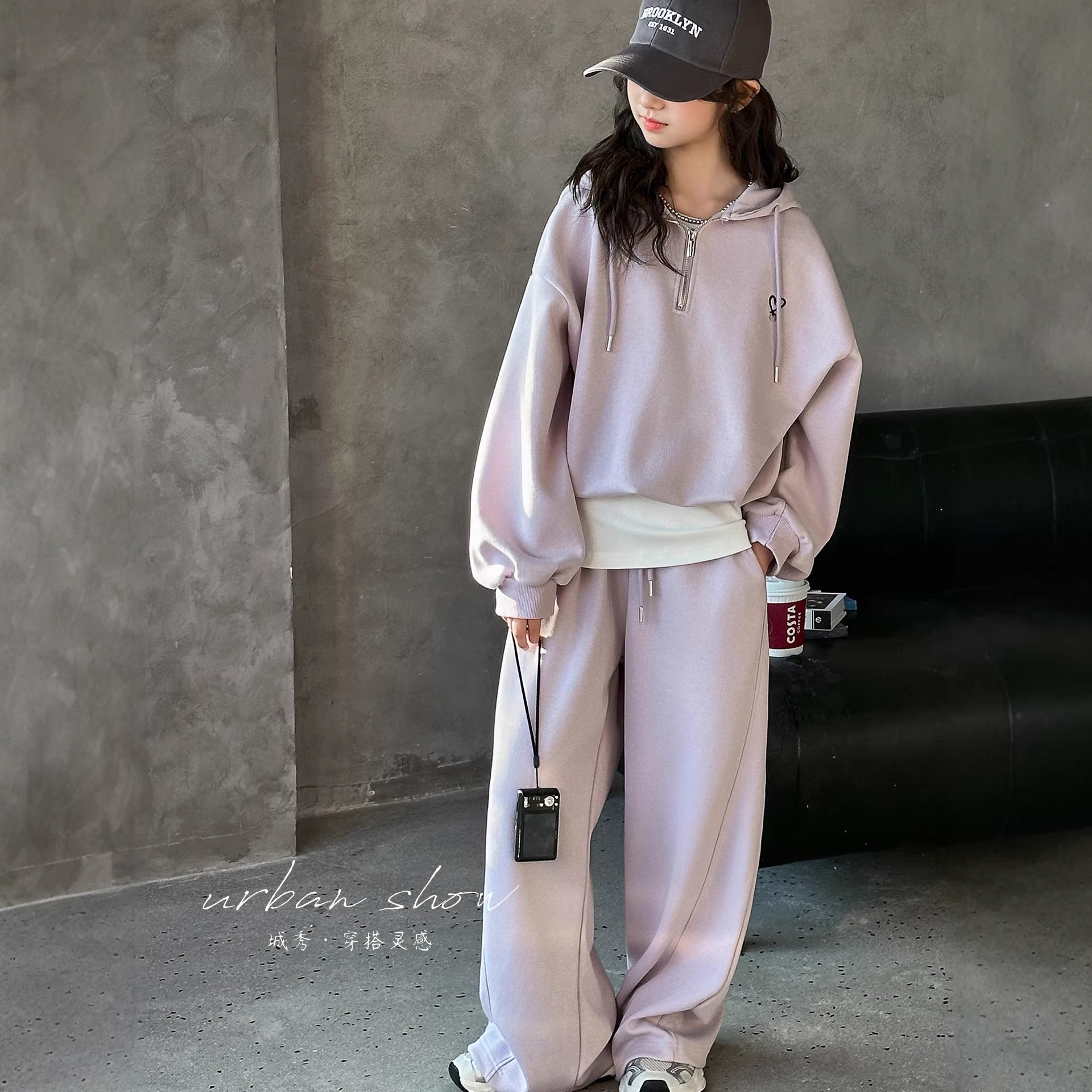 女童春季休闲运动套装2026新款女大童连帽卫衣儿童阔腿裤三件套潮
