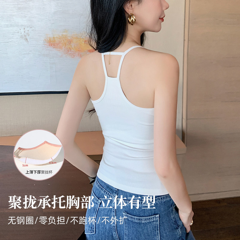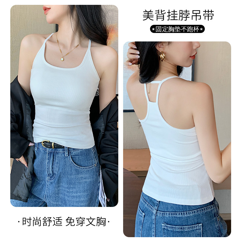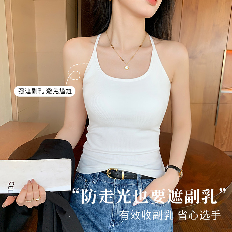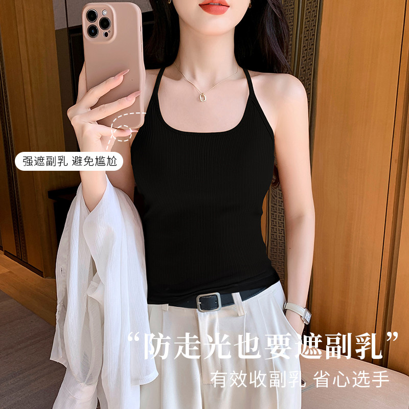 黑色挂脖美背小吊带背心女内搭2026年新款带胸垫一体式打底上衣夏