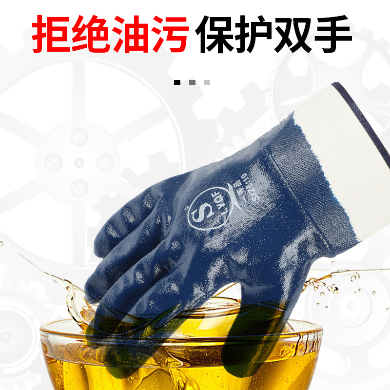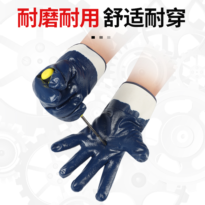 防油手套劳保耐磨工作防水耐油橡胶工业丁腈胶皮干活加油电焊帆布