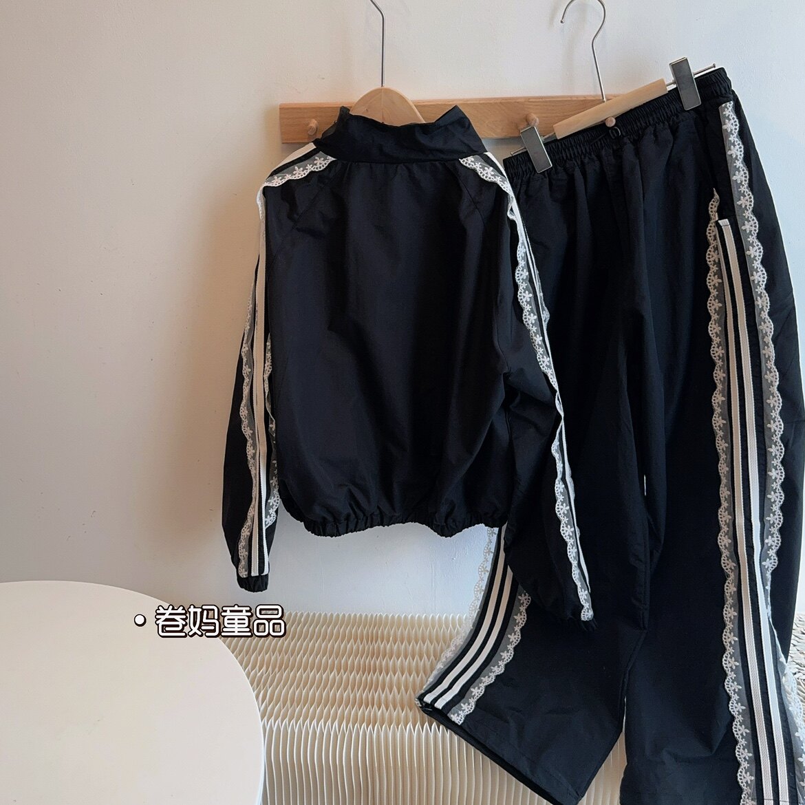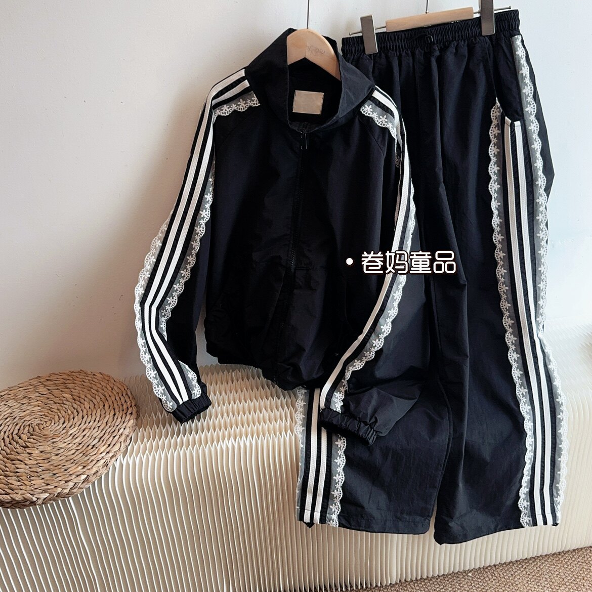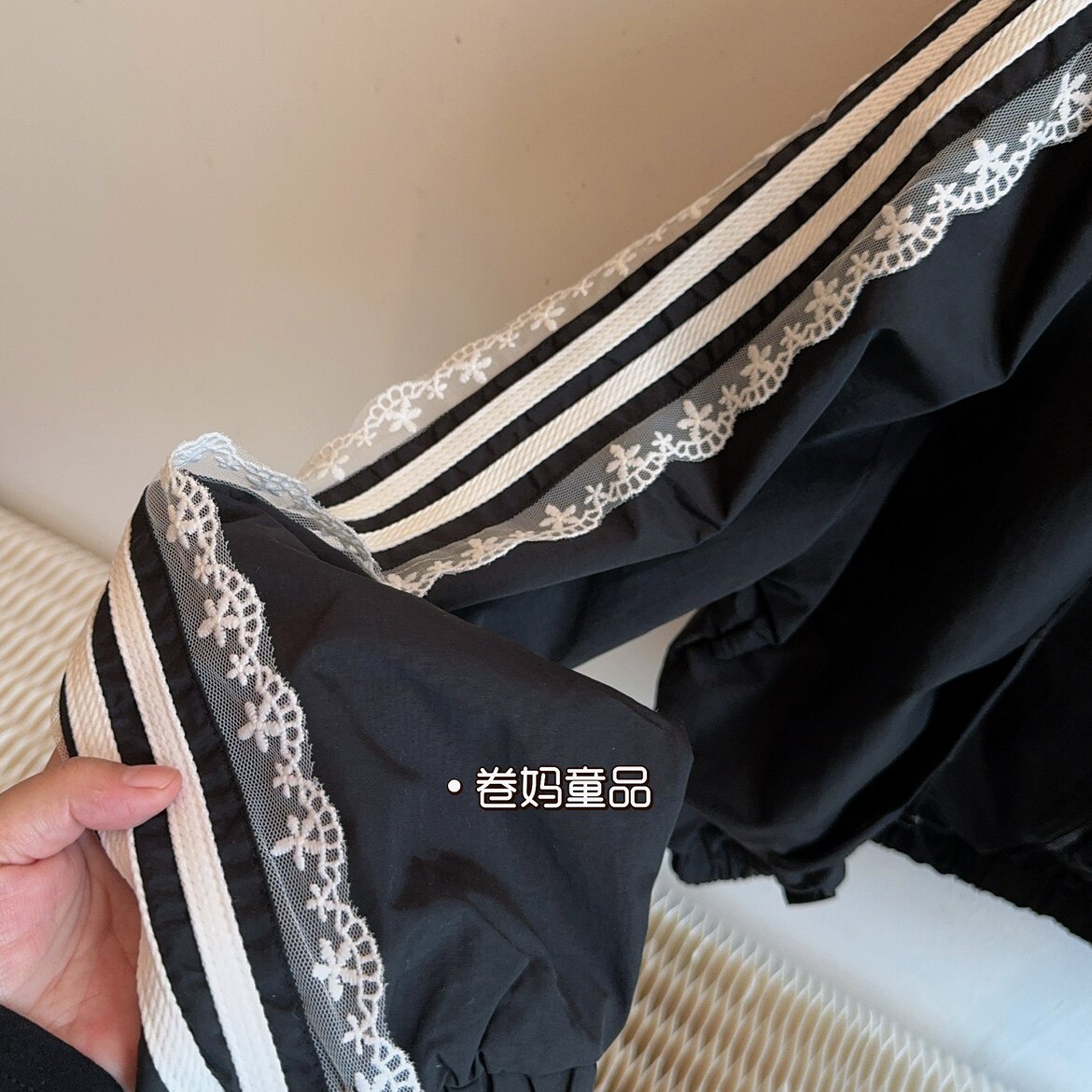 卷妈爱大小卷女童套装26春秋中大童童冲锋衣蕾丝外套运动裤两件套