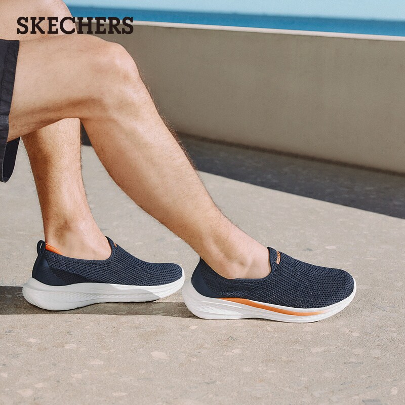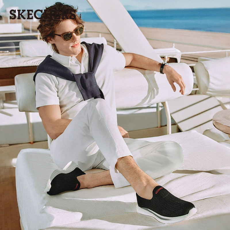 斯凯奇夏季男鞋一脚蹬健步鞋厚底休闲运动鞋轻便透气网面散步鞋