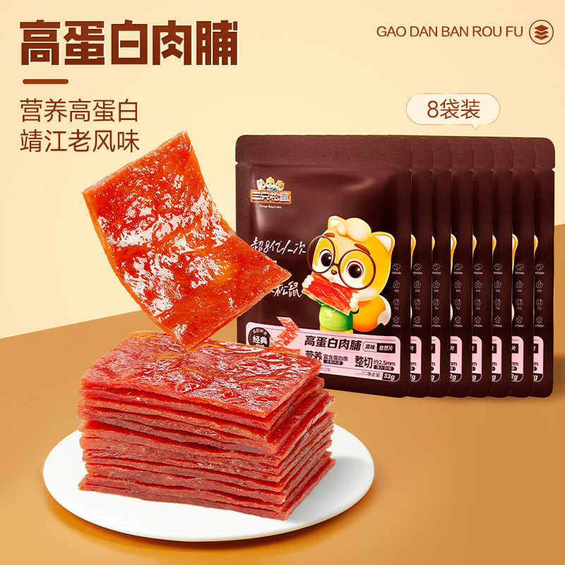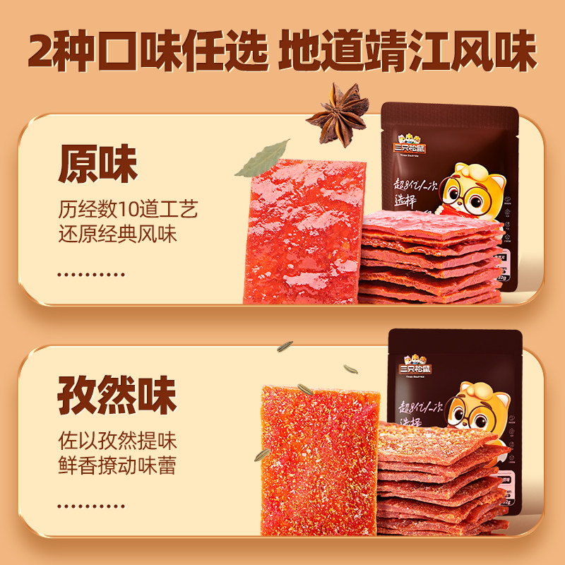 三只松鼠_高蛋白肉脯_鸡肉猪肉脯干靖江特产小袋吃熟食零食大礼包