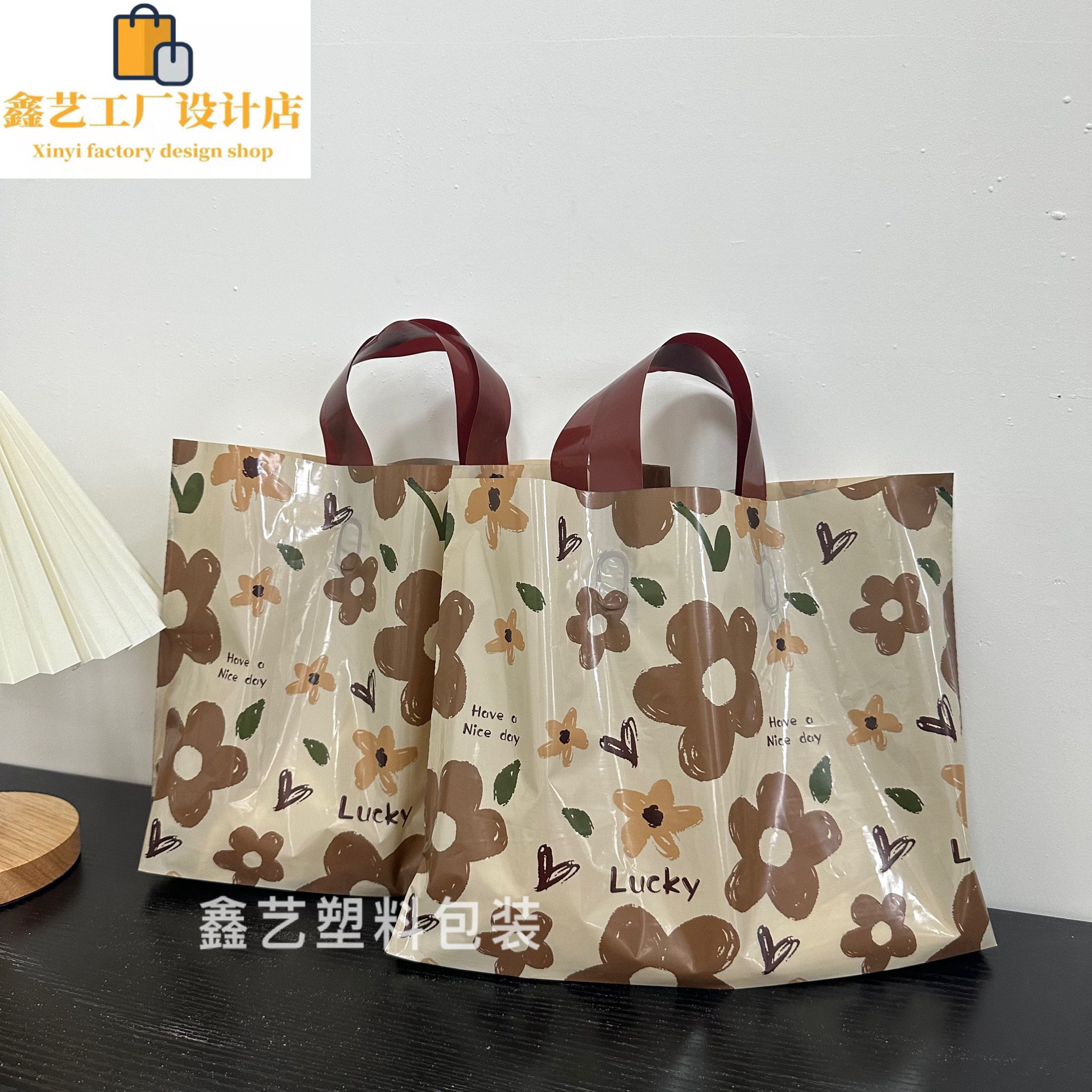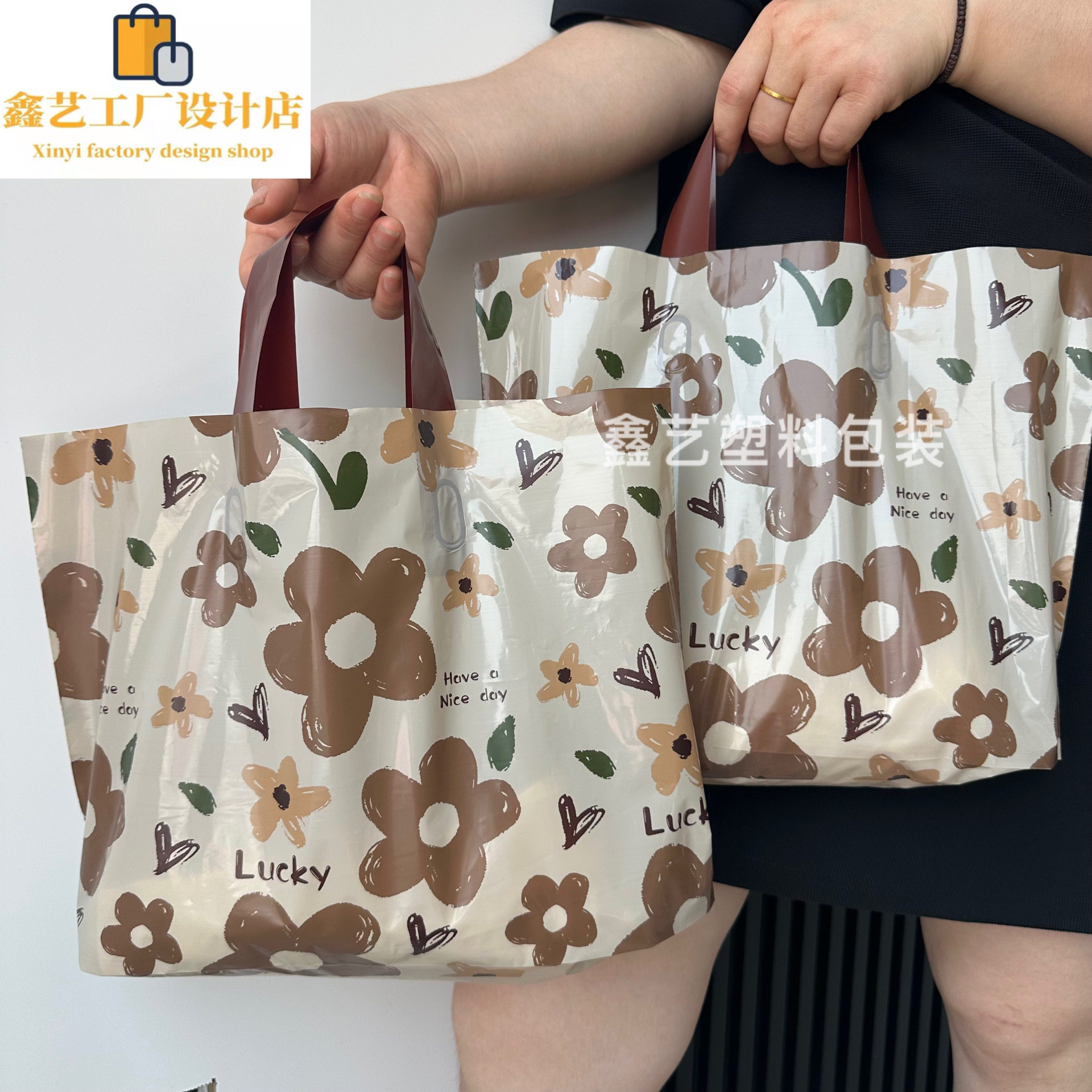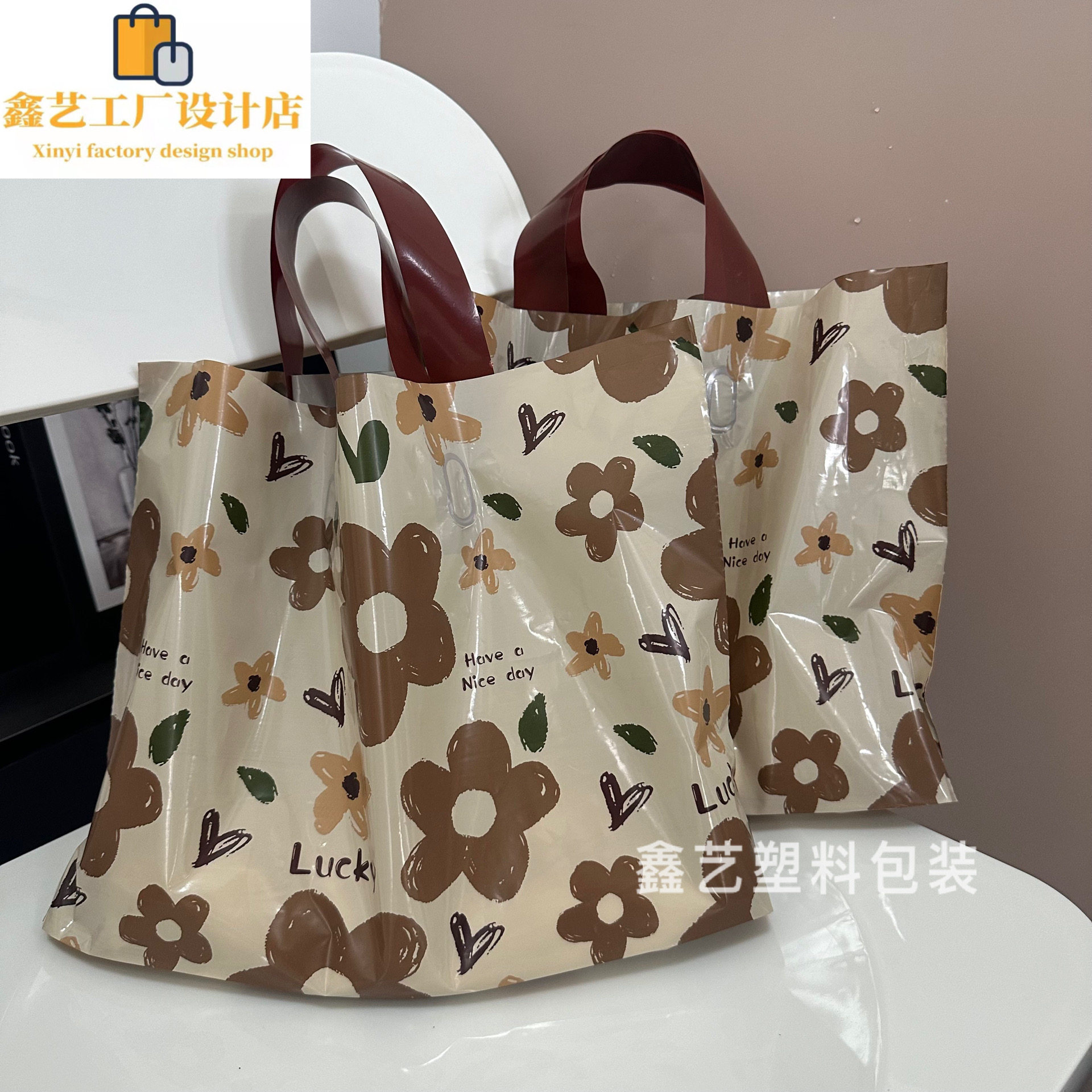 新款摩卡咖色花朵手提袋服装店袋子加厚塑料袋礼品袋包装袋购物袋