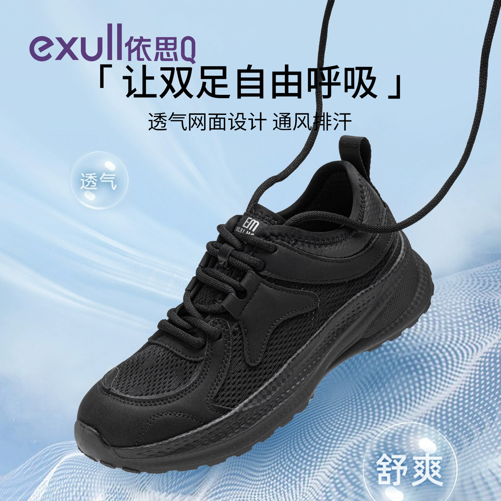 依思q运动鞋女薄款春季百搭2026新款黑色网面休闲鞋减震轻便女鞋