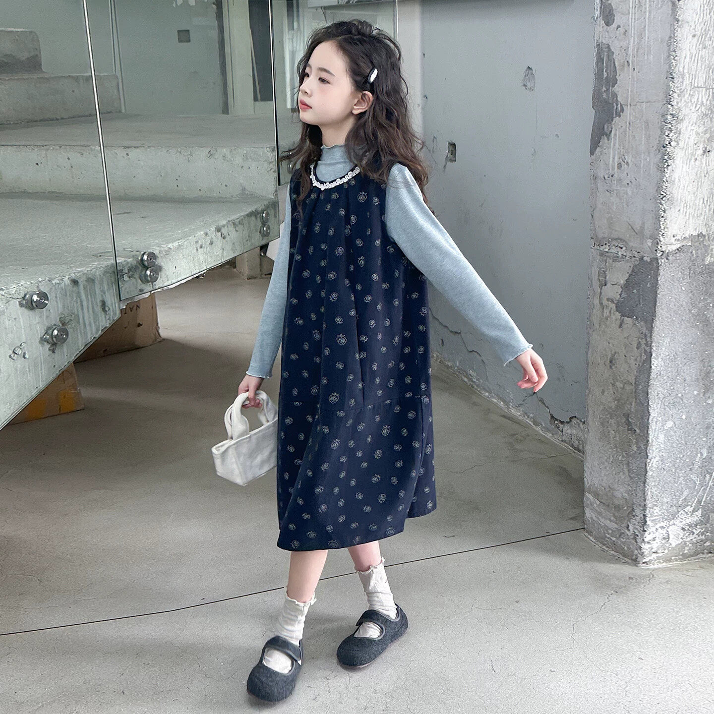 女童春款连衣裙套装新款时尚韩版宽松小女孩春装中大童裙子两件套