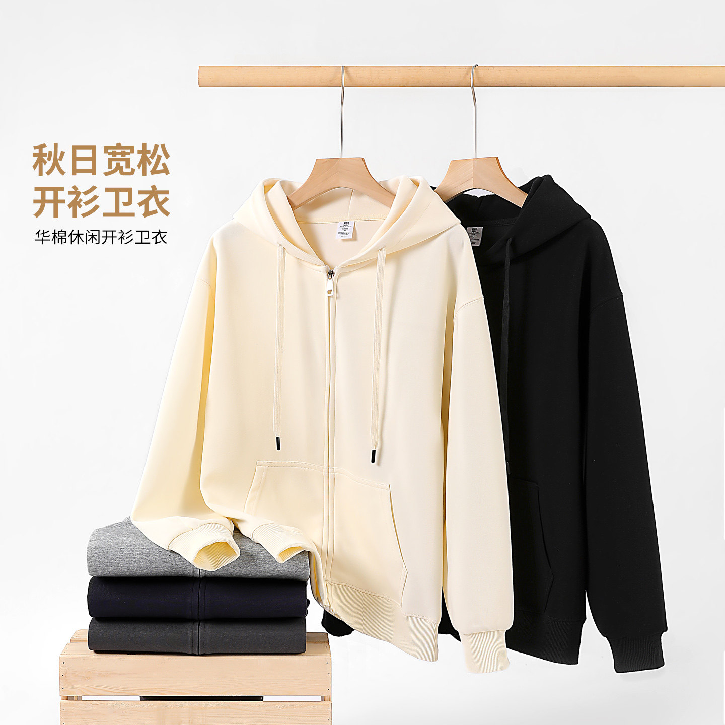 GENIOLAMODE捷尼拉莫连帽卫衣外套女款春季白色小个子宽松套头男