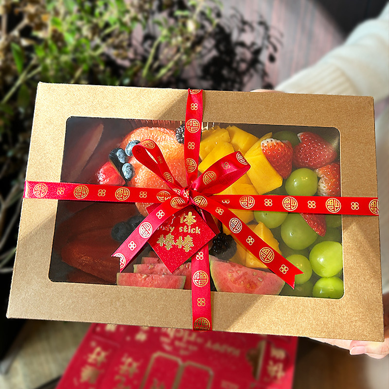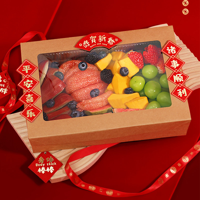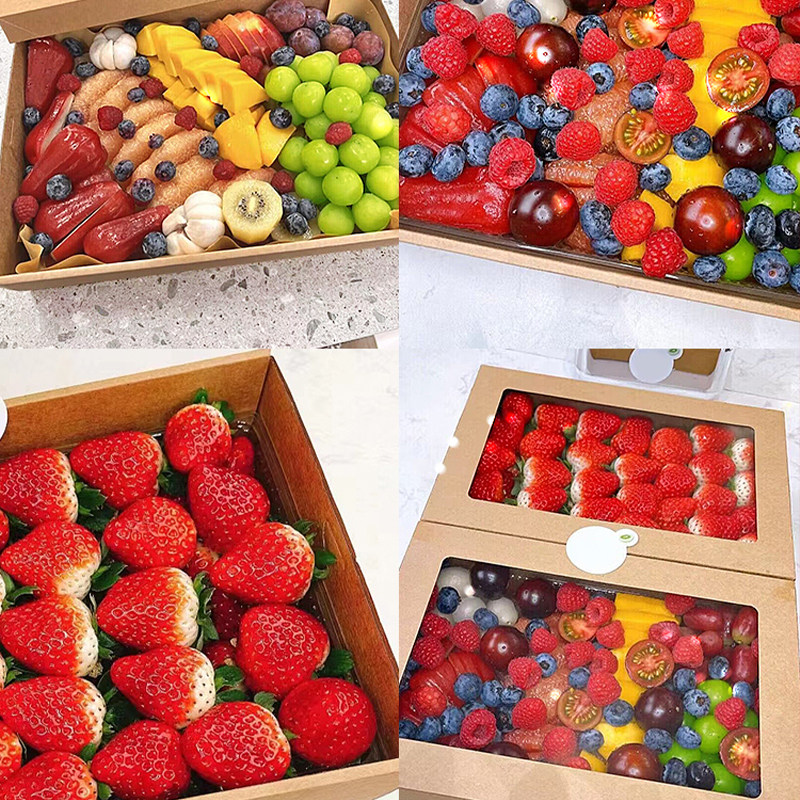 春游水果切牛皮纸餐盒三明治水果蛋糕包装盒野餐果切打包防水纸盒