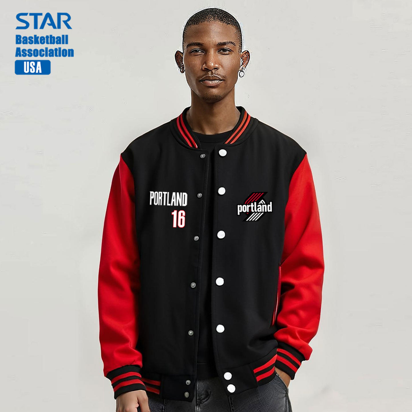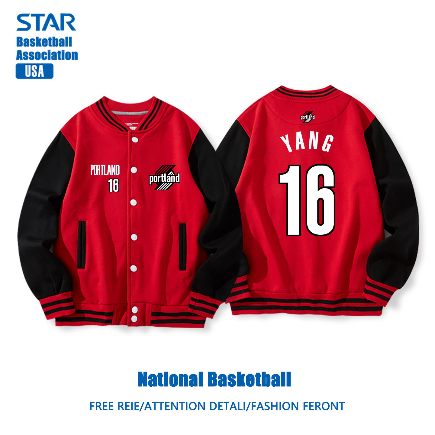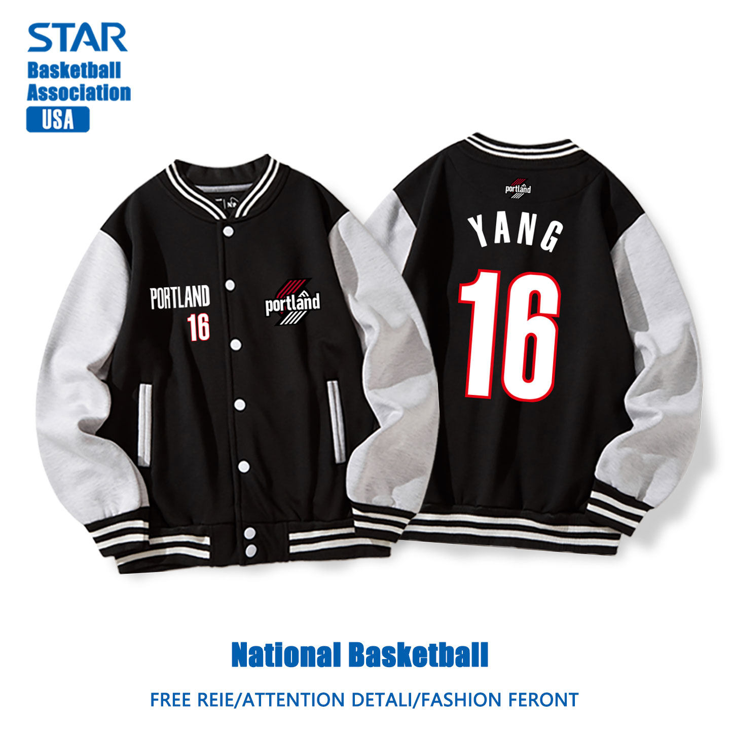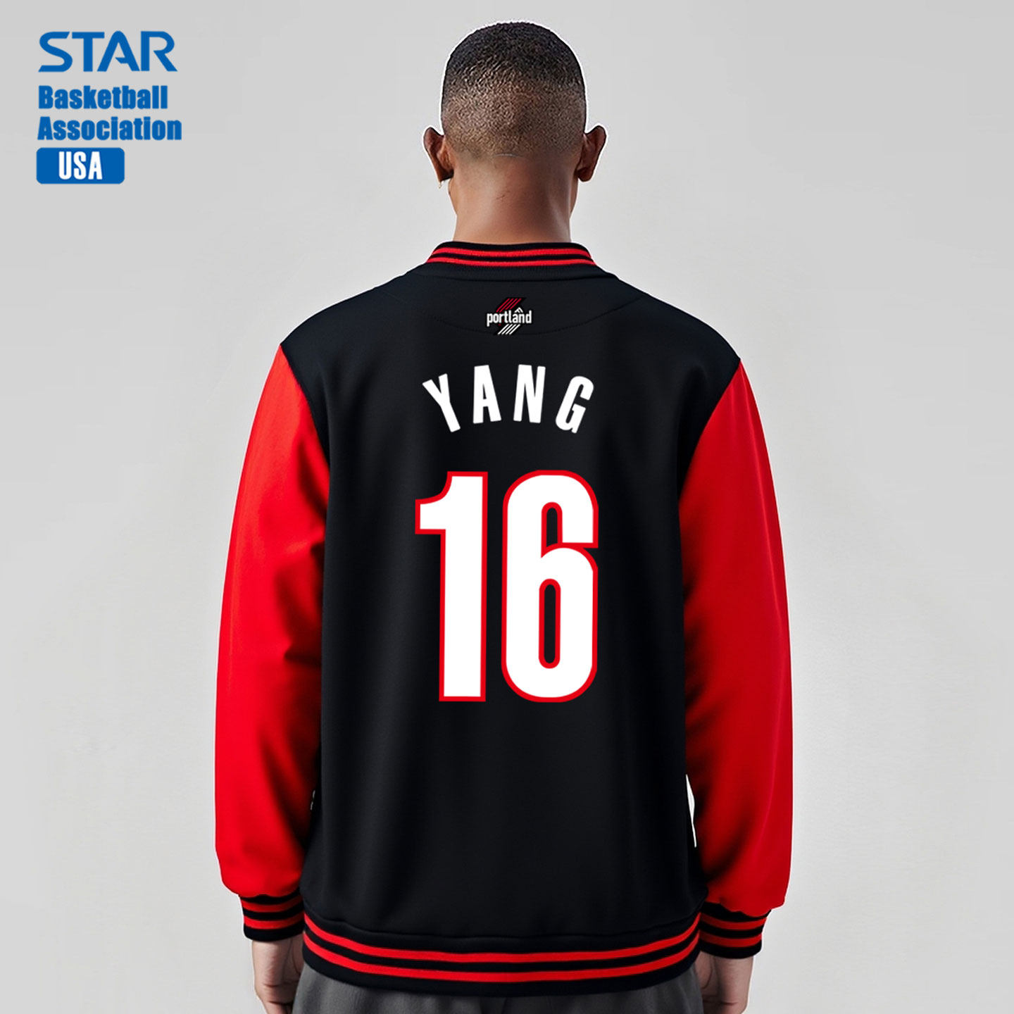 开拓者队杨瀚森篮球拼接撞色棒球服外套春秋款美式训练男上衣夹克