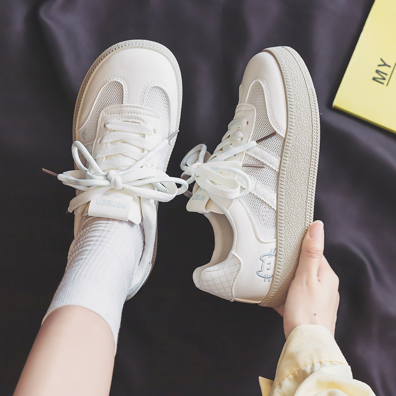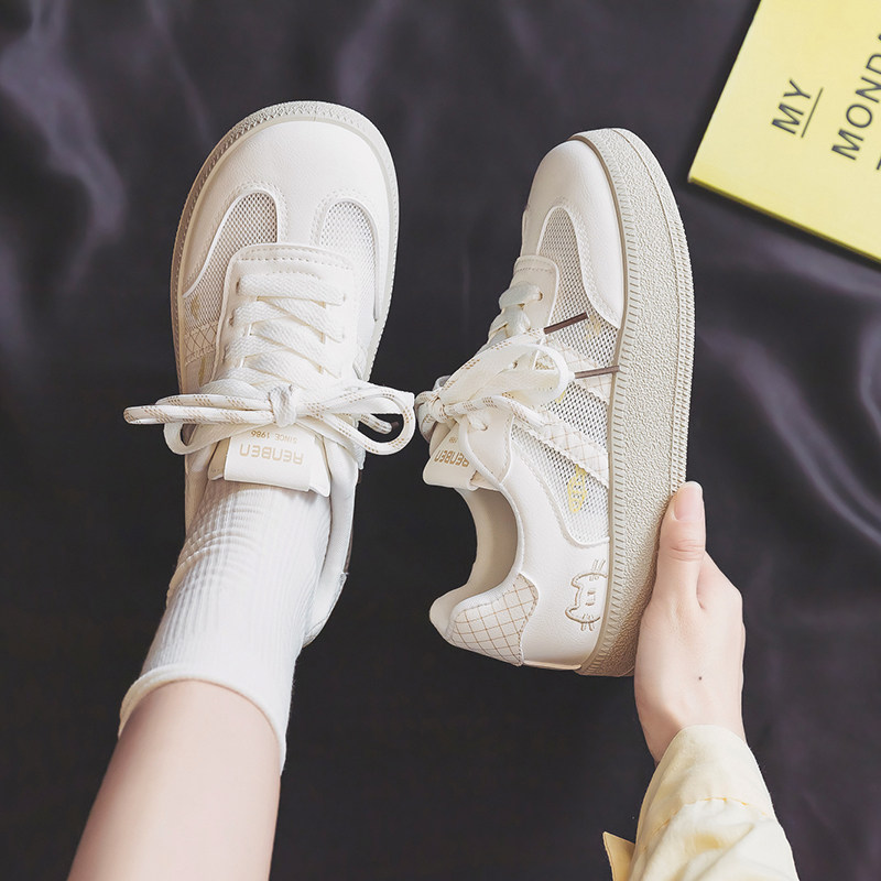 人本网面小白鞋女款2026夏新款薄款镂空休闲鞋子厚底透气板鞋女鞋