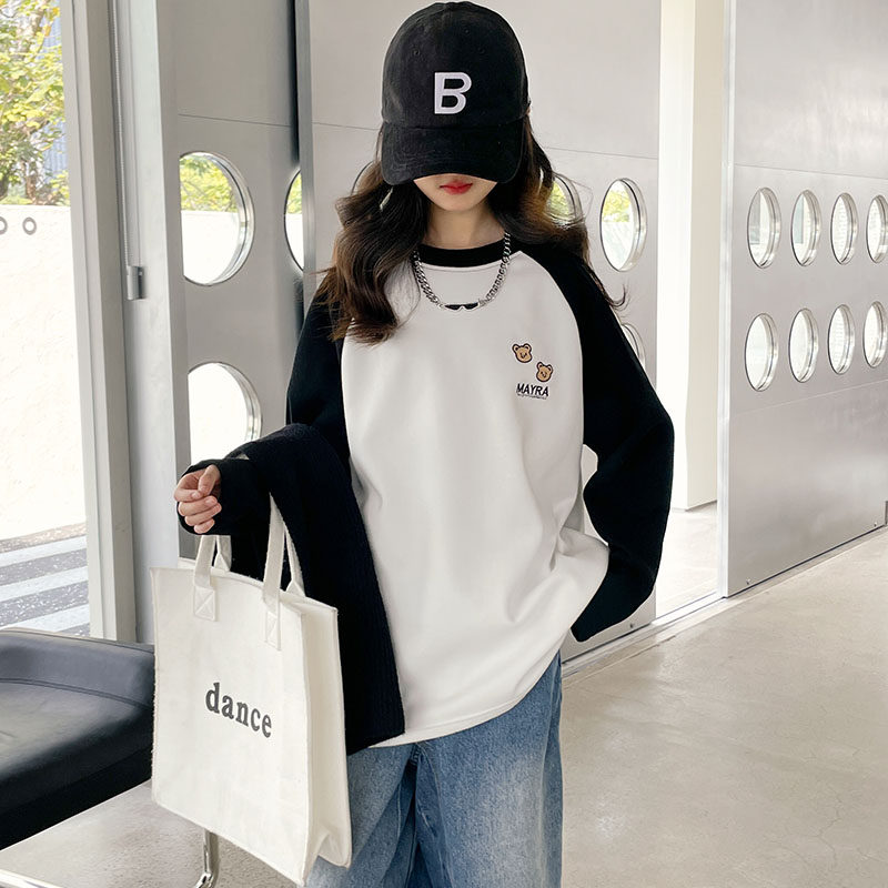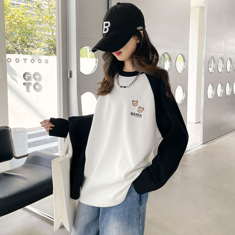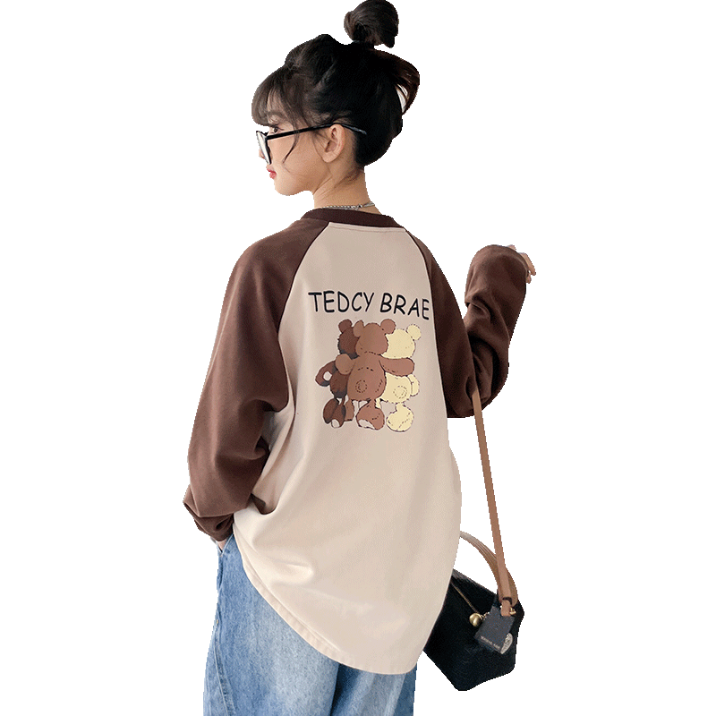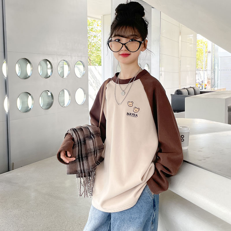 女童打底衫2026春装新款洋气女大童长袖T恤衫圆领内搭上衣拼接潮T