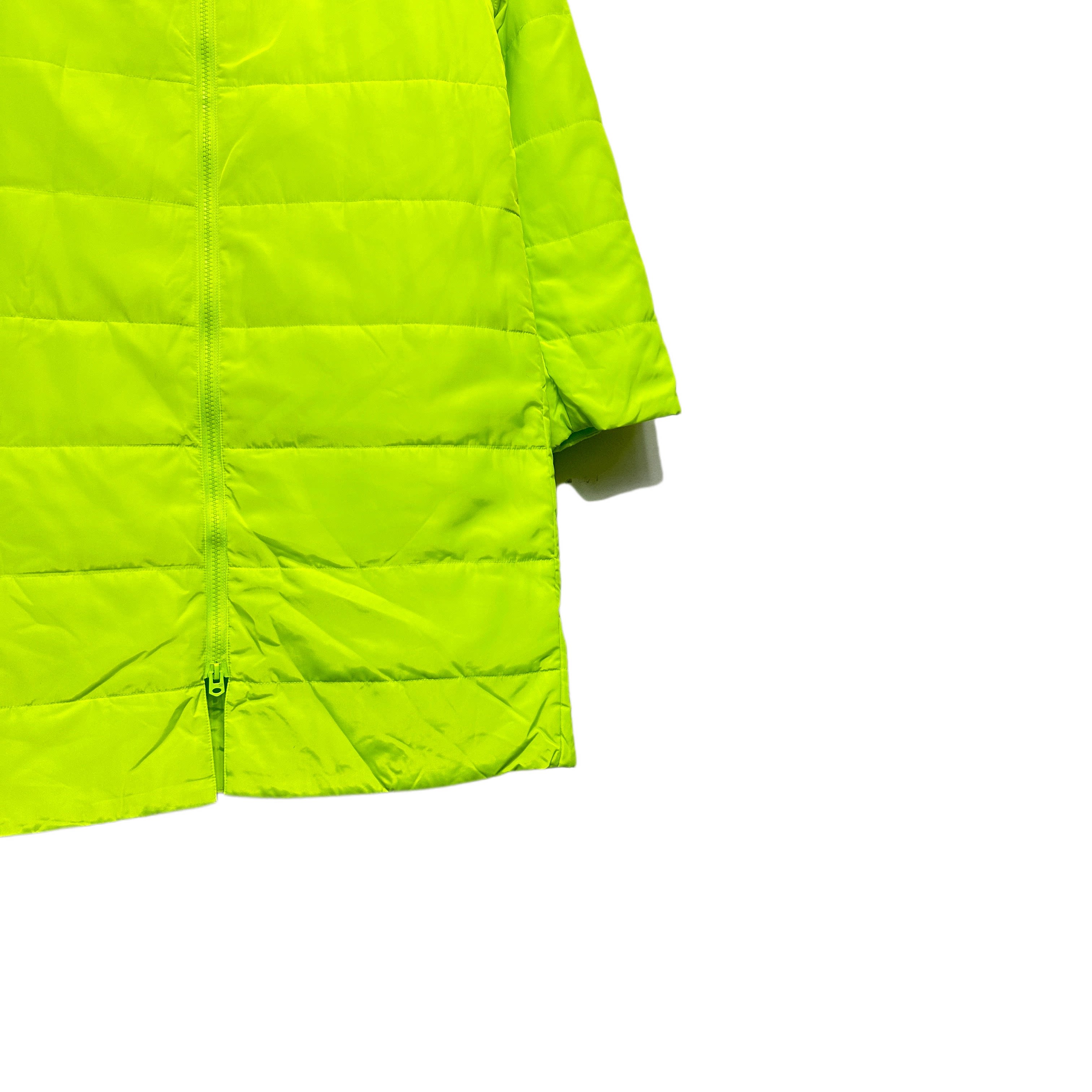 圣迪折扣女装 时尚休闲荧光黄绿外穿内搭宽松连帽长款薄棉服外套
