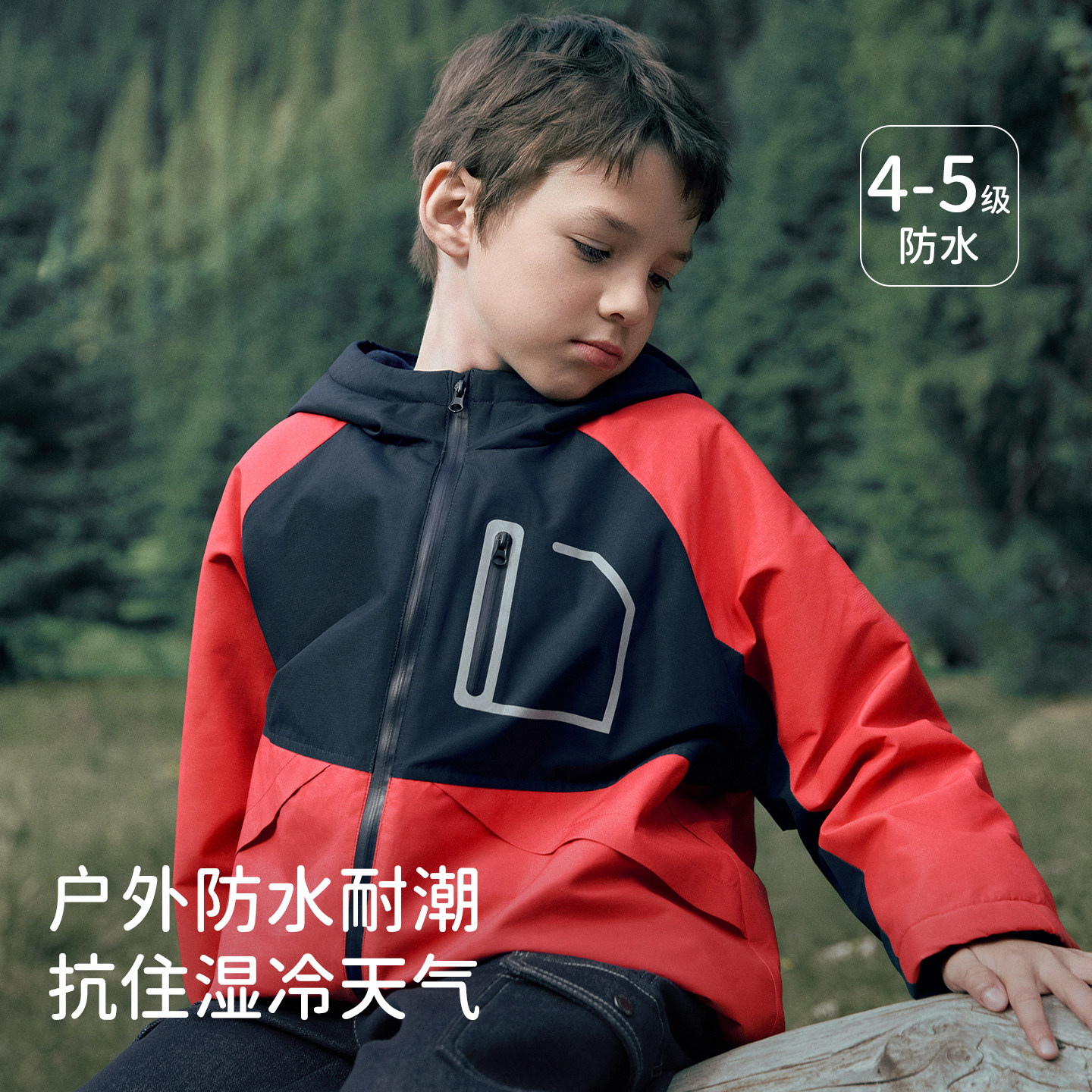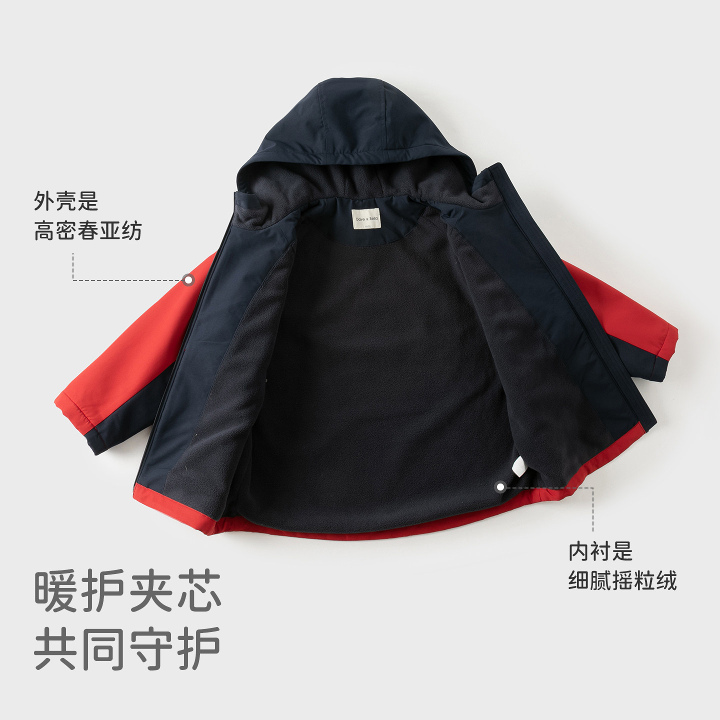 戴维贝拉儿童防水加绒冲锋衣男2026冬装新款男童新年红色外套童装