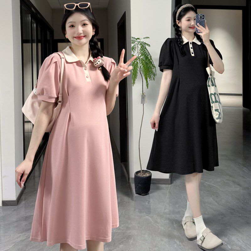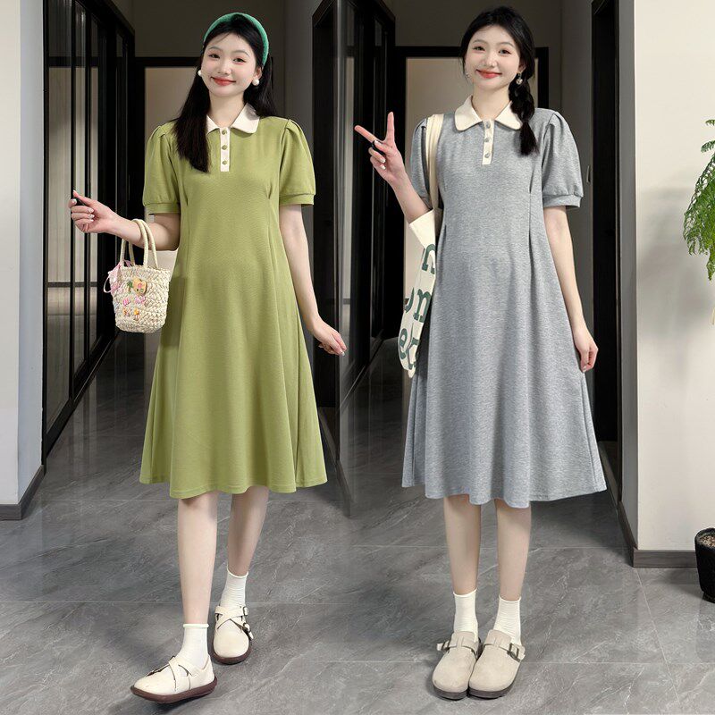 大码孕妇连衣裙夏季气质减龄plo领裙中长款宽松200斤短袖t恤裙子