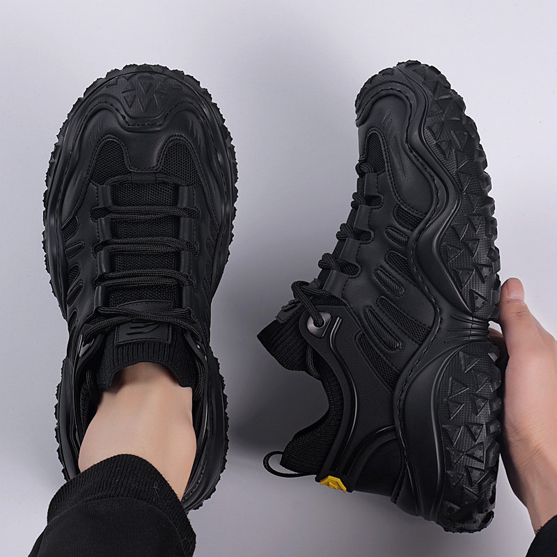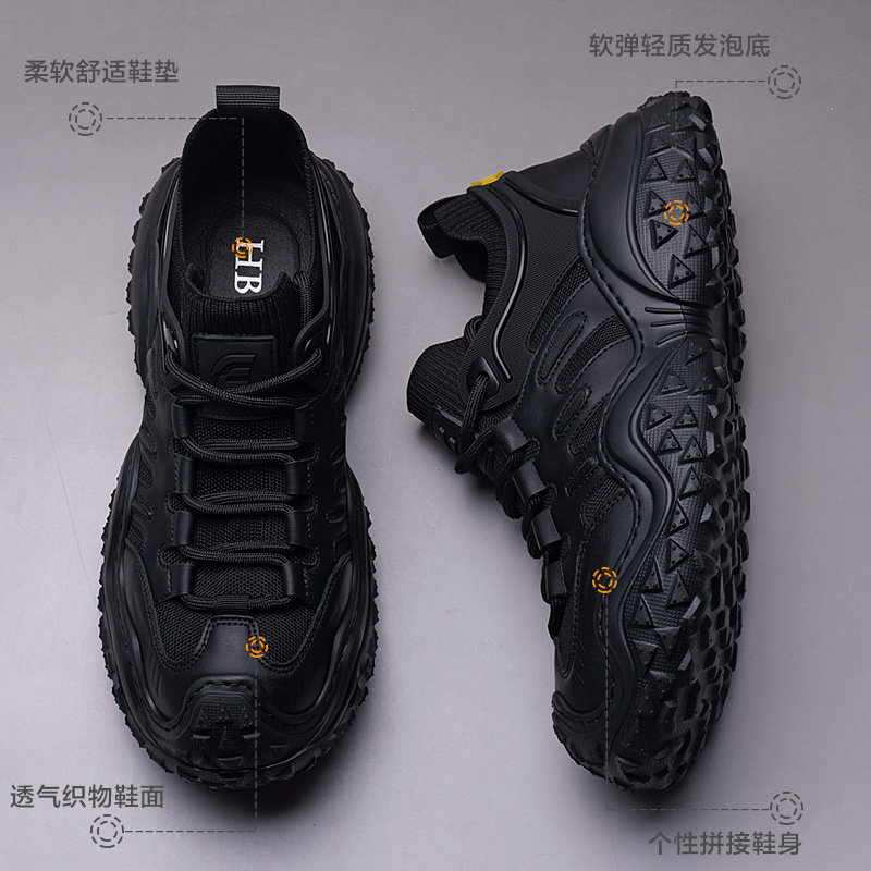 男鞋春季新款透气网面男士休闲鞋百搭潮流轻便厚底黑色运动鞋子潮