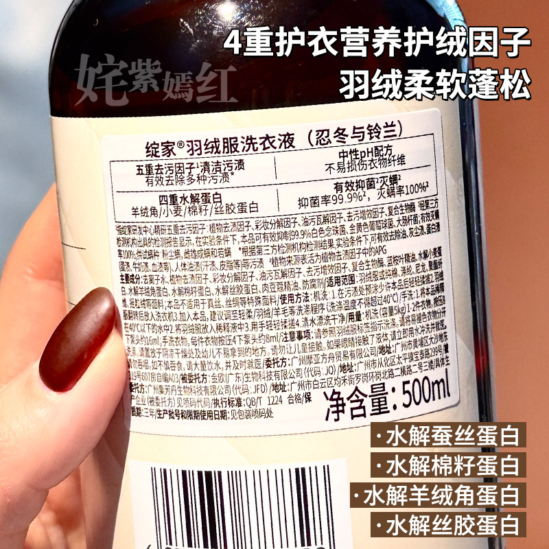 羽绒蓬松!绽家羽绒服洗衣液清洁蓬松洗涤剂羽绒衣物专用护衣除菌