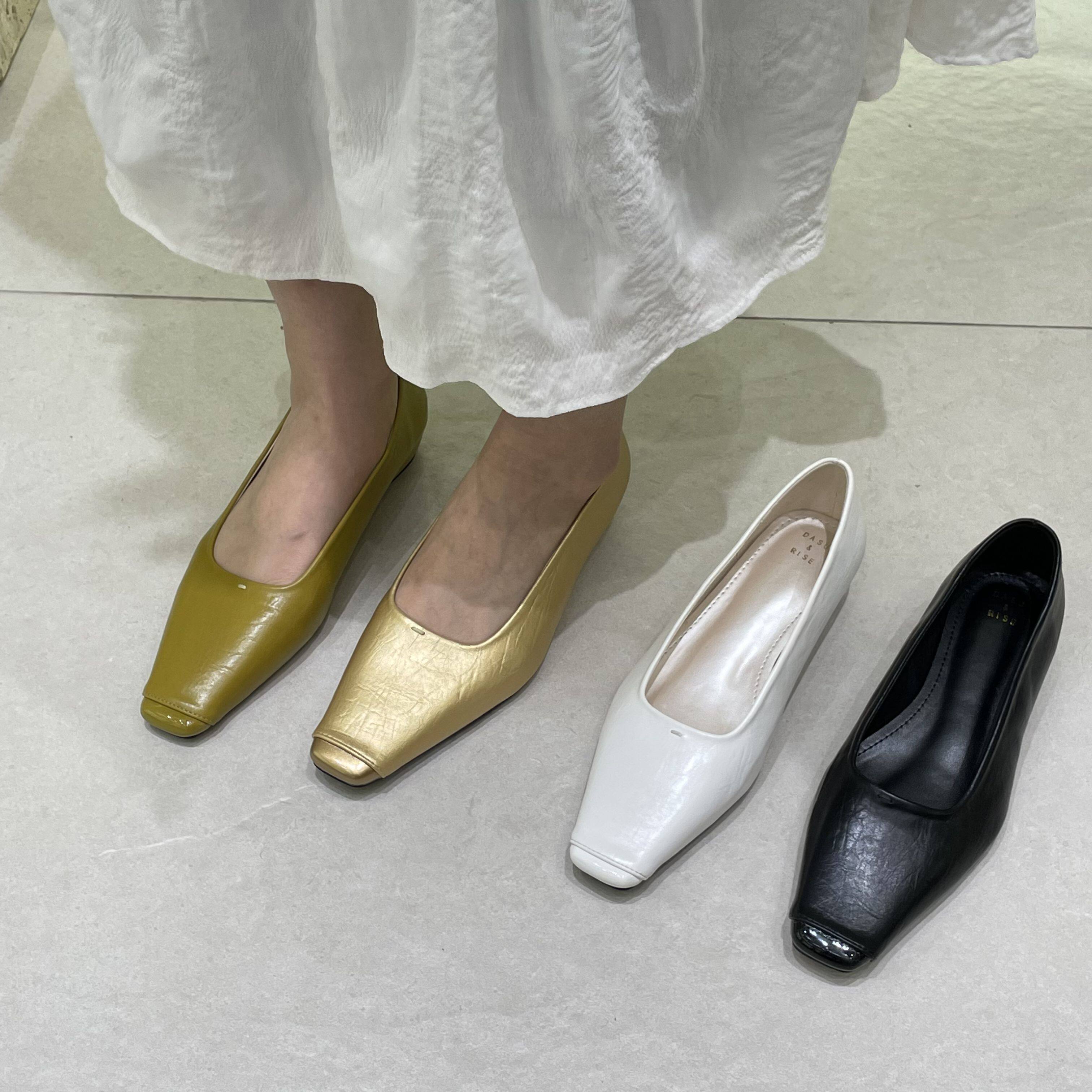 十三行女鞋实拍内增高方头金色浅口2026春夏季法式百搭黑色通勤鞋