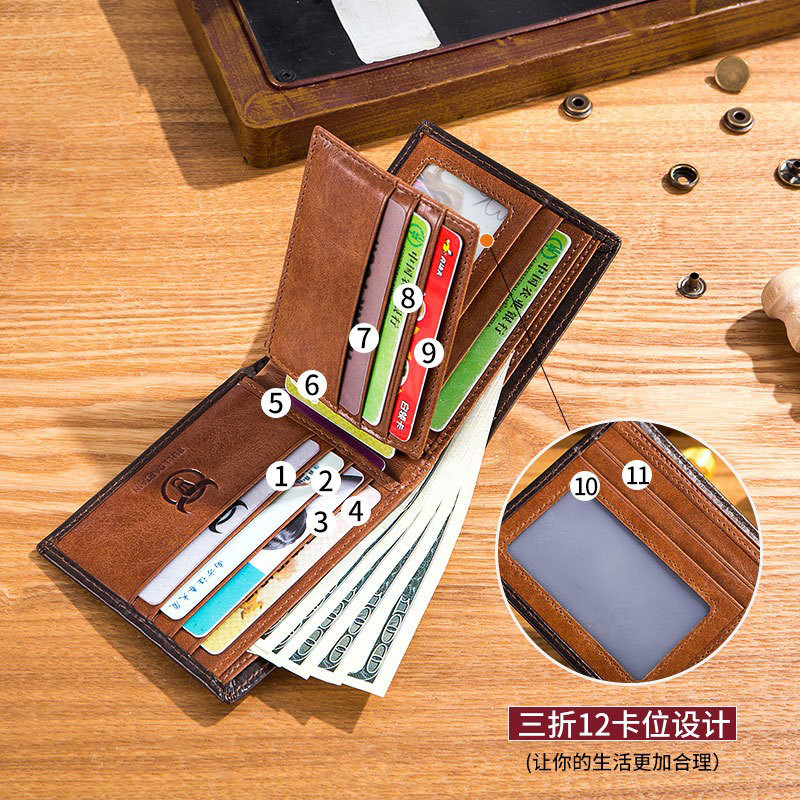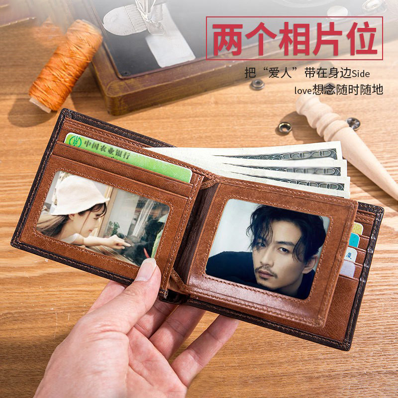 牛船长复古钱包男真皮防盗刷多卡位横短款相片驾驶证头层牛皮钱夹